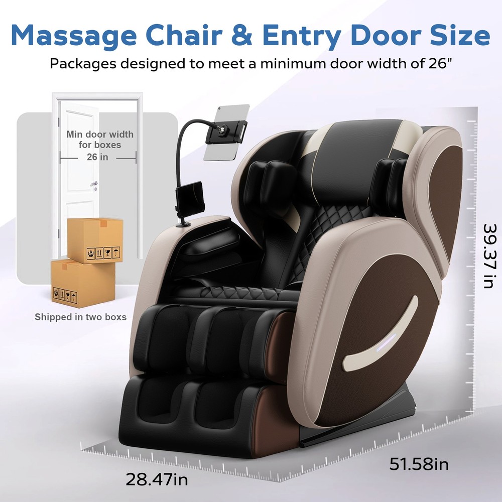 2026 Massage Chair Recliner with Zero Gravity with Full Body Air Pressure Black Features [Full-body massage] The massage chair has 8 fixed rollers on the backrest to provide targeted massage therapy for the neck, back and lumbar area. You can customize your massage experience by choosing from 5 preset automatic modes. The lumbar and leg areas are equipped with a heating function to improve blood circulation and relieve sore muscles. Multiple airbags are also included for an adjustable pressure massage with three intensity levels for shoulders, arms and calves. [Foot relaxation] The massage chair comes equipped with a retractable footrest that adjusts to accommodate various heights, ensuring a personalized fit for every user. Located at the base of the feet, the footrest provides a soothing kneading massage using rollers, offering a relaxing experience. As the rollers spin, they stimulate acupressure points, and the integrated leg heating function effectively promotes blood circulation while relieving muscle tension in the legs and feet. [Zero Gravity mode] By pressing the "zero gravity" button, you can fully recline with your feet elevated above your heart, reducing strain on your cardiovascular system and promoting better blood circulation. The armrests and seat tilt simultaneously, allowing your hands to continue enjoying the massage. Even after the massage session ends, the chair remains in zero gravity mode, enabling you to stay comfortably reclined for an enhanced relaxation experience. [Humanized design] The base is equipped with wheels, allowing you to easily move the chair around the room. Bluetooth audio connectivity allows you to enjoy your favorite music while enjoying your massage. The sides of the massage chair are equipped with soothing blue ambient lighting to create a calm and relaxing atmosphere during your massage. This full body massage chair accommodates users weighing up to 180 pounds and up to 6.1 feet tall. [Top Gift Choice]Whether you're treating yourself to some well-deserved relaxation after a long day at work, or looking for a special gift for your beloved parents or friends, this massage chair is a thoughtful choice that brings comfort, relaxation, and health to their lives. It's the perfect way to express your care and affection. This massage chair not only enhances your daily relaxation experience but also promotes a healthier lifestyle, making it an excellent choice for a healthy gift. Product information Product Name 2026 new massage chair recliner, equipped with zero gravity function, full body air pressure massage system, waist/leg heating. Color black Product Dimensions Special Feature Automatic Unit Count 1.0 Count Room Type Office Recommended Uses For Product Office Included Components Arm Pad Item Weight 94.8 pounds Model Name Massage Chair Age Range (Description) Adult Country of Origin China after-sales service High quality after-sales service. Any questions will be replied promptly Commentary Items may slightly different from photo in terms of color due to the lighting during photo shooting or the monitor's display.