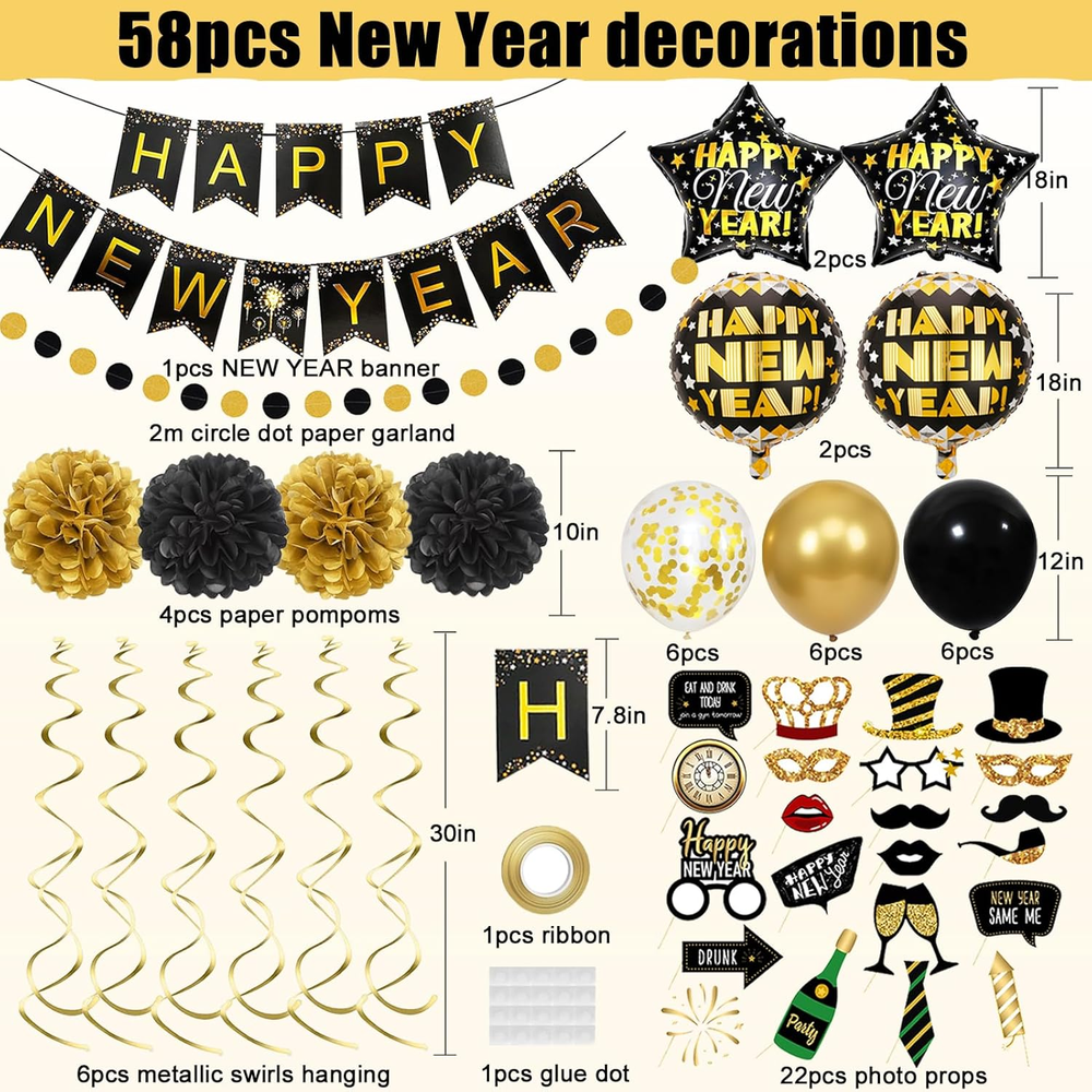 Store New Arrivals Add to Favorite View Feedback Contact 2026 New Years Decorations, Happy New Years Banner and Black Gold Balloons Set, Photo Props and Hanging Swirls, Paper Pompoms, Black and Gold Circle Dot Garland, Eve Party Supplies 2026 Description Product Dimensions 0.5 x 5 x 5 inches Material Rubber Item Weight 11.3 ounces Theme Party Manufacturer recommended age 6 months and up Occasion Birthday Included Components Curling Ribbon New Years Eve Party Supplies Set: The new years decorations includes:1pcs Happy New Yeas banner, 2pcs 10in black pompoms, 2pcs 10in gold pompoms, 2pcs 18in round new yeas foil balloons, 2pcs 18in star foil balloons, 1pcs 78in black gold circle dot garland, 22pcs photo props, 6pcs gold swirls hanging, 6pcs 12in gold balloons, 6pcs 12inch gold confetti balloons, 6pcs 12in black balloons, 1pcs glue dot, 1pcs ribbon Classic Color: With classic black and gold as the main tones, this New Year decoration set features rich and stylish colors, along with a complete range of accessories, easily creating a luxurious and lively New Year atmosphere Occasion Applicable: These versatile decorations can be hung anywhere, indoor fireplaces, ceilings, walls, or outdoor gardens. Ideal for New Year parties, family gatherings, corporate events, etc. Whether hosting an intimate indoor get-together or a grand outdoor New Year bash, this set creates a joyous atmosphere High Quality Material: The New Year banners and photo booth props, as well as the metallic spiral ornaments, are crafted from high - quality cardstock, super thick and hard, not easy to bend, can be reused Customer Service: We are committed to providing top-quality products and ensuring your satisfaction. If you're not completely happy with this new year decorations, feel free to for a solution. Happy New Year Decorations ABOUT US We offer the best prices around on high quality products. Our E-store includes media such as books, movies, music and games while offering electronics, toys, sporting apparel, clothing, tools, general home, garden items and more. SHIPPING We are always working hard to ensure your package arrives as soon as possible. Please understand that some factors like weather, high postal traffic, and the performance of shipping companies are outside of our control. We offer free shipping to the lower 48 states and ship within 2 business days of payment, usually sooner. We do not accept P.O. Boxes. Please provide a physical address. For shipping outside of the continental USA, we only use eBay's Global Shipping Program.The item is shipped to KY and then sent to the rest of the world. International customers are responsible for all duties and taxes. Continue to check out in order to calculate costs for shipping the item to your country. Messages regarding eBay's Global Shipping Program MUST be directed at eBay EXCLUSIVELY. RETURNS We offer a 30-Day Return Policy on items which you are not completely satisfied with. You have the option for a full-refund or an exchange of the item. No returns are available on items shipped outside of the USA. PAYMENT We accept PayPal. CONTACT US This page content is yet to come Please ad us to your favorite seller and visit again later Thank You CUSTOMER SATISFACTION We try our very best to make sure every customer is completely satisfied. If there's a problem, message us! We're happy to help. WE ACCEPT Copyright © 2021 AutoDS. | All Rights Reserved