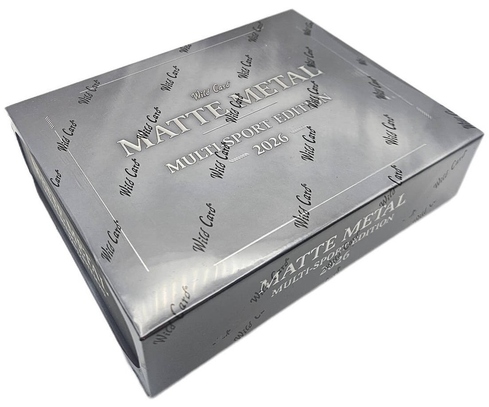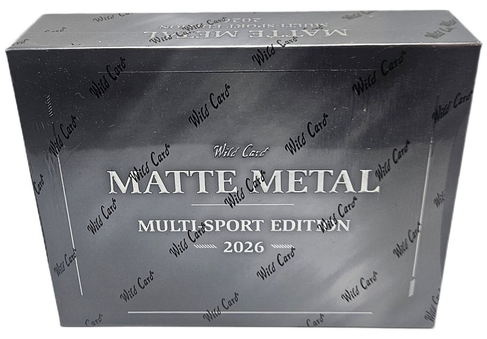 2026 Wild Card Matte Metal - Multi Sport Edition - Hobby Box 5 Packs Per Box - 1 Card Per Pack 1 Autograph and 1 God Pack or Rare Artist Proof Hit We’re proud to introduce Matte Metal 2026 Multi-Sport — a true reinvention of metallic trading cards and, without question, the most premium product Wild Card has ever produced! This is a bold reimagining of metallic trading cards, combining a true metallic substrate with a premium matte finish for a look and feel unlike anything in the hobby! Instead of glare and mirror gloss, Matte Metal delivers deep color, rich blacks, and sharp detail with a soft-touch metallic surface that feels modern, powerful, and intentional. matte metal doesn’t reflect light — it absorbs it! The result is a card that feels heavier, cleaner, and more premium in hand. This isn’t polished chrome. This is forged metal! Matte metal sets a new standard for collectors who want sophistication, texture, and presence — a fresh evolution of metal built for the modern hobby! Look for Rare Artist Proof cards! 1 Autograph 1 God Pack or 1 Rare Artist Proof Hit Metal has always been about shine. Matte Metal is about control. This is a bold reimagining of metallic trading cards, combining a true metallic substrate with a premium matte finish for a look and feel unlike anything in the hobby. Instead of glare and mirror gloss, Matte Metal delivers deep color, rich blacks, and sharp detail with a soft-touch metallic surface that feels modern, powerful, and intentional. matte metal doesn’t reflect light — it absorbs it! The result is a card that feels heavier, cleaner, and more premium in hand. This isn’t polished chrome. This is forged metal. Matte metal sets a new standard for collectors who want sophistication, texture, and presence — a fresh evolution of metal built for the modern hobby.
