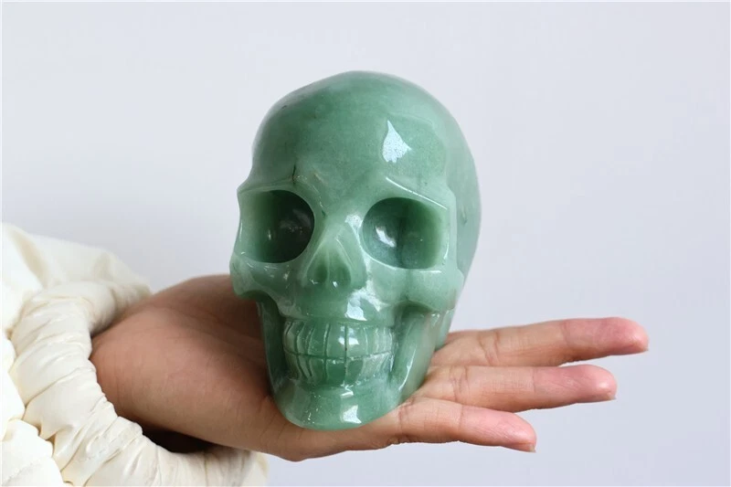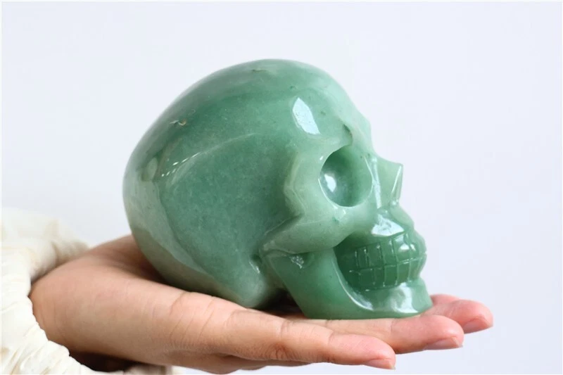 2.06LB Natural aventurine Quartz hand Carved skull crystal Reiki healing
