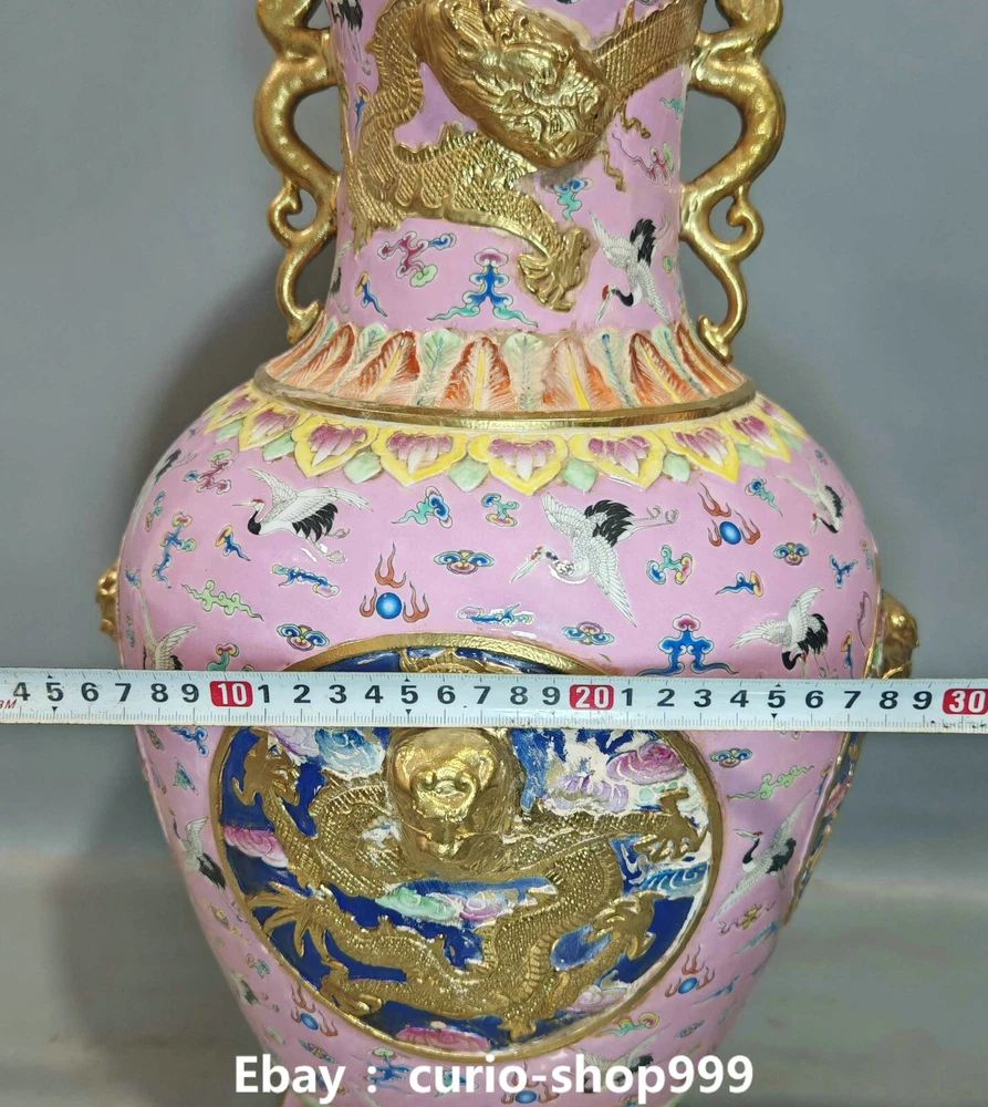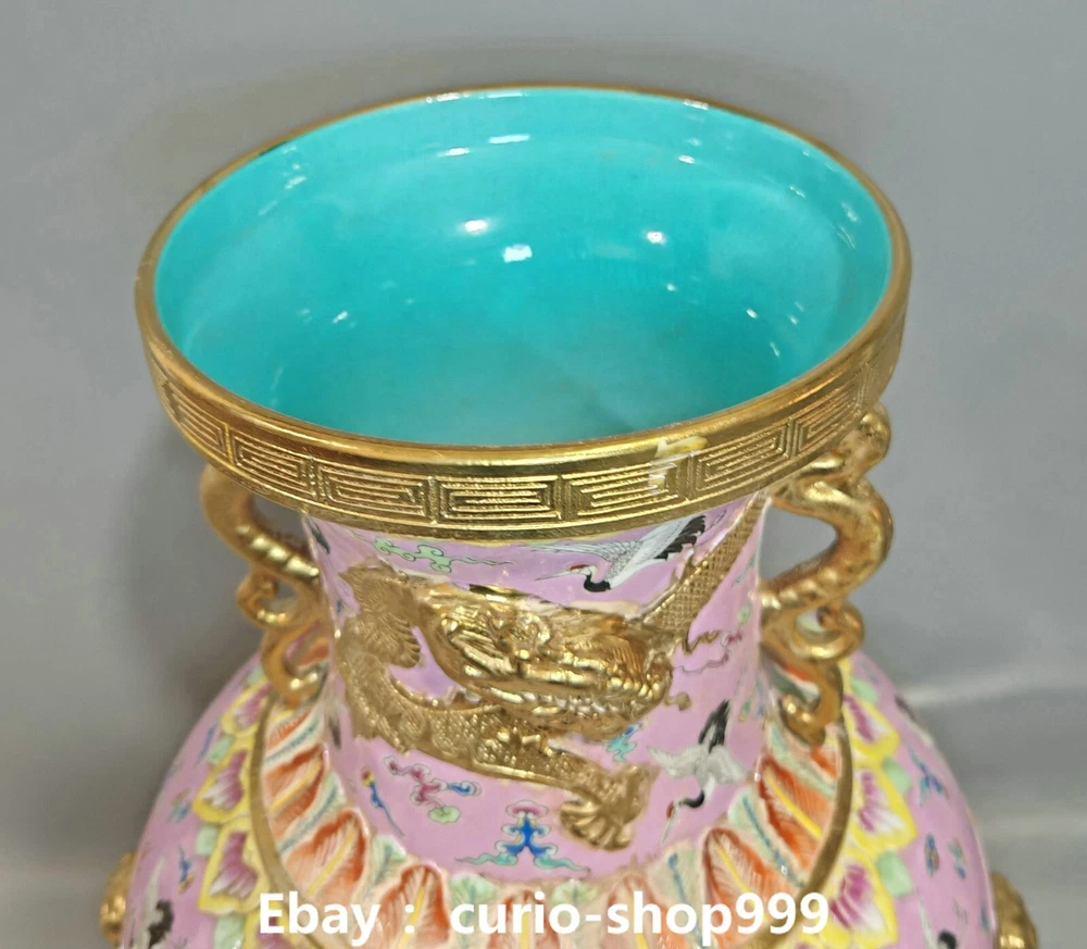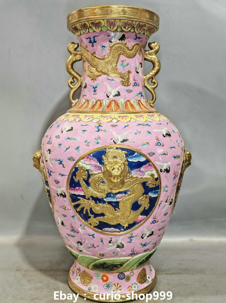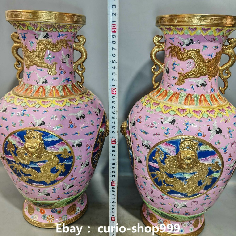**** Welcome to our antique & Collectable Shop : Porcelain**** Description: Here is 20.8" Qianlong Famille Rose Porcelain Gold Dragon Crand Animal Bottle Vase Pair. It is in good condition, and was created by skilled craftsmen in traditional style with fine handcrafts.This is a great piece of valuable collection, a valuable personal alter or a very good present. the handwork is very fine with incredible detailling. Don't miss out this chance to get it.Wish you good luck! . Material : Famille Rose Porcelain Gold Size : Heigh t 20.8 Long 9.0 B readth 9.0 (inch) Condition Perfect Condition. Perfect, with no scratches, flaws or repairs. Weight: 21 KG----included the weight of packing materials Shipping cost to all over the world countries in Free Honored Customers: We are selling the collectibles products and crafts in Beijing ,China since 1993 and collected them all over the world all the time . In our shop the bronze sculpture, animal, vase, urn, flowerpot,Incense Burner.Table chair sets. Militaria goods. buddha statues, Bodhisattva Statues, Buddhist Ritual Items etc is our speciality .Many of the items we sell come from our own personal collection and have been in our family for a very long time .My great-grandfather was the first in this family to start collecting art & antiques when he still lived in San Xi and Tibet around 1922 ,some of the paintings he once collected can now be seen in museums around the globe.We won't make money from t he shipping cost, if you dislike the item when you receive it,we can refund all of your money to you within thirty days. Please confidence for bidding . We recommend the combine shipping and offer you an big price discount if you order more items together ! 2025.02.17 四 号