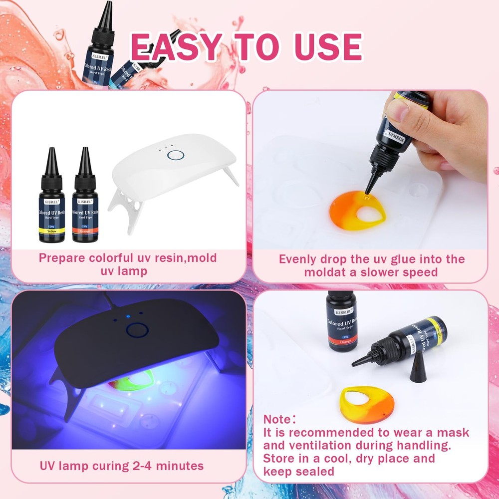 UV Resin, 20 Colors - 400g UV Resin Kit, Transparent Colored UV Resin, Rigid Ultraviolet Clear UV Resin for Crafts, Jewelry Making and Decoration 【Colored UV Resin】: Colorful uv resin kit contains 20 kinds of colored resin. Each bottle of resin is 20g, Perfect for beginners. 【Professional and Safe】: Our UV resin is made of high quality raw materials and professional unique formula, safe and non-toxic; completely odorless after curing; short curing time; 36W UV lamp curing only 1-3 minutes. 【Vibrant Colors】: The Color Resin kit include 20 colors, red, orange red, orange, orange pink, pink, yellow, lemon yellow, greenish blue, blue, sky blue, dark green, green, light green, purple, pink purple, light purple, black, gray, coffee, white. Rich colors help you create amazing works! 【Widely Used】:UV epoxy resin can be used to make jewelry, craft decorations, castings, ornaments and so on. It can also be mixed with dried flowers, foil, glitter and sequins to create more brilliant colors. Hurry up and share these ideas with people around you! 【Suggestions for Use】:①Store in a cool place. ②Try before use to master the technique. ③The surface must be kept clean and dry when bonding. ④Don't touch with your hands immediately after curing, wait for curing and cooling before touching to avoid leaving fingerprints. UV Resin, 20 Colors - 400g UV Resin Kit, Transparent Colored UV Resin, Rigid Ultraviolet Clear UV Resin for Crafts, Jewelry Making and Decoration Shipping We offer FREE shipping on all orders! We ship within Three business days of payment, usually sooner. We use a selection of shipping services such as UPS, FedEx, USPS etc. We only ship to the lower 48 states, no APO/FPO addresses or PO Boxes allowed. Local pickups and combined shipping options are not provided at this time. Return You can return a product for up to 30 days from the date you purchased it. Any product you return must be in the same condition you received it and in the original packaging. Please keep the receipt. Payment We accept payment by any of the following methods: PayPal Please pay as soon as possible after winning an auction, as that will allow us to post your item to you sooner! Feedback Customer satisfaction is very important to us. If you have any problem with your order, please contact us and we will do our best to make you satisfied. Contact Us If you have any queries, please contact us via ebay. We usually respond within 24 hours on weekdays. Please visit our eBay store to check out other items for sale! Thank you for shopping at our store.