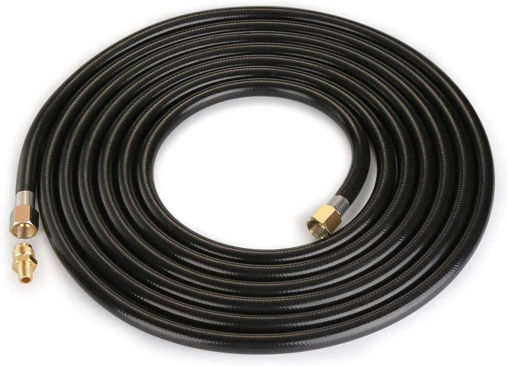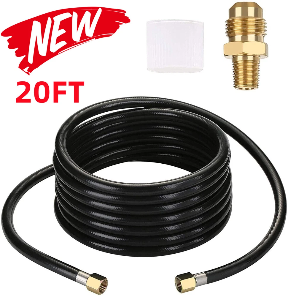 eBay 20FT Propane Hose Assembly with Both 3/8" Female Flare for Gas Grill, RV, Fire Pit, Heater, etc, Included a Pipe Fitting 3/8" Flare x 1/8" MNPT 20 feet propane hose for extending the distant between the propane tank and your LP appliance. Use it to keep your gas tank farther away from grills. You don't have to move your larger fuel tank. Connect an appliance equipped with 3/8" male flare fitting. This hose has 3/8" female flare fittings on both ends.Come with pipe fitting 3/8" Flare M x 1/8" MNPT. Solid brass fitting and High quality rubber hose construction withstands weather, scratching, denting and corroding. Our propane hose work pressure is 0-350 PSIG,and it pass the CSA Certified, you can enjoy the BBQ. Use for Gas Grill, RV, Turkey Cooker, Propane Fire Pit, Generator, BBQ Gas Grill, Heater and More.Most commonly used to connect an auxiliary tank to a motor home/travel trailer. High Quality Material: This propane hose is made of long-lasting rubber and the connection is made of 100% solid brass construction withstands weather, scratching, denting and corroding. This hose has female 3/8" ends on both sides, which can connect an appliance equipped with 3/8" male flare fitting. Use for Gas Grill, RV, Turkey Cooker, Propane Fire Pit, Generator, BBQ Gas Grill, Heater and More. Most commonly used to connect an auxiliary tank to a motor home/travel trailer. Note: 1. For your safety, please check and make sure the hose is away from the OPEN FIRE and HIGH TEMPERATURE place before installing it to your appliances. 2. All propane appliances including Gas Grill, Turkey Cooker, Propane Fire Pit, Generator, Heaters and Stoves are Outdoor Use. 3. Both propane tank side and grill side should be Fully Tightened before using on your propane appliances to prevent leakage. Length: 20 Feet Working Pressure: 0-350 PSIG Material:Thick Rubber and Solid Brass Fitting Hose Diameter: 5/16" ID CSA Certified Propane Hose’s Thread: 3/8'' Female Flare x 3/8'' Female Flare Brass Thread: 3/8" flare M x 1/8" MNPT