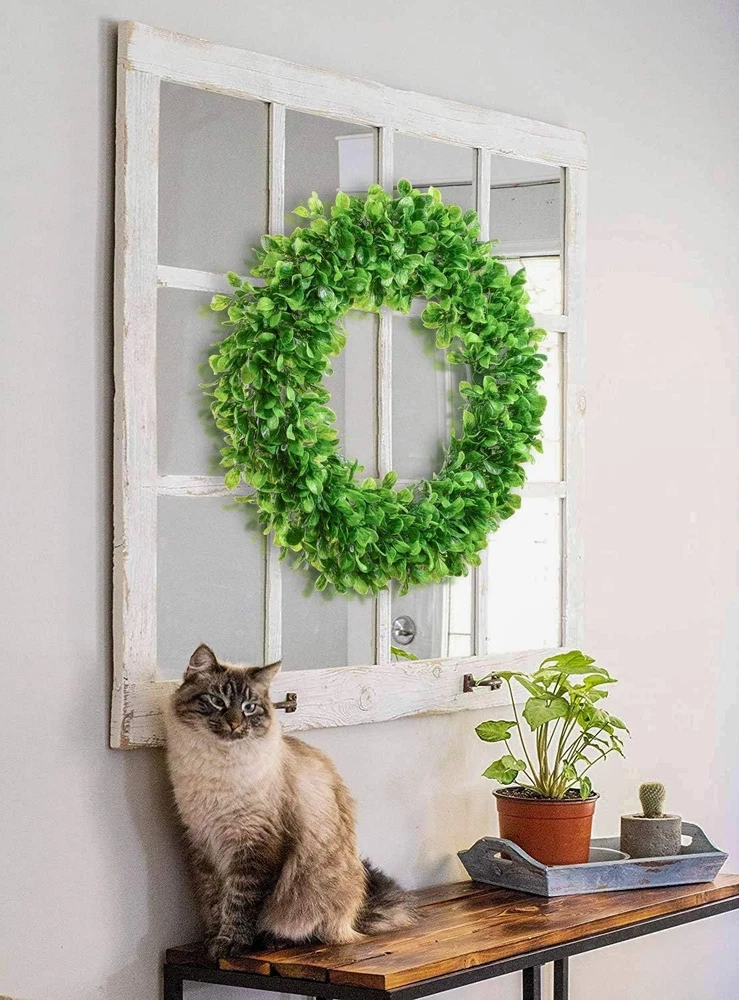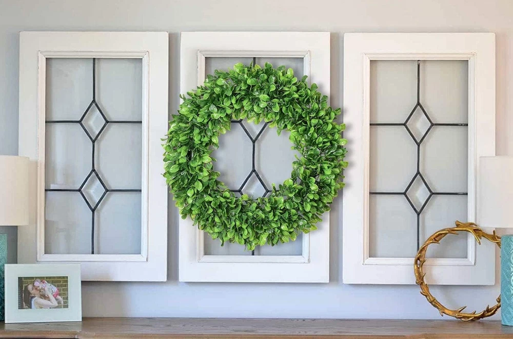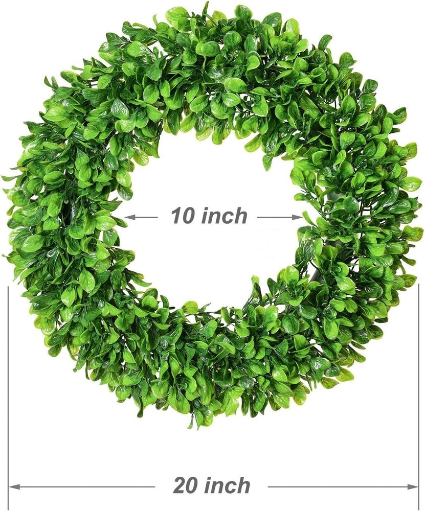 Elevate your home decor with this stunningly elegant 20-inch artificial boxwood wreath! The lush, vibrant greenery looks incredibly lifelike, and the 3-inch thickness gives it a full, natural appearance. Perfect for doors, walls, or even table centerpieces, it adds a touch of timeless charm without any maintenance. Lightweight yet durable, it holds its shape beautifully after a quick fluffing. A fantastic value for such high-quality faux foliage—highly recommend for year-round style!