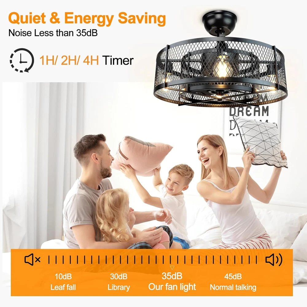 This ceiling fan is a game-changer! The industrial farmhouse design adds a stylish touch to any room, and the remote makes adjusting speeds and the timer super convenient. Love the 6-speed settings—perfect for any mood. The caged light fixture gives a cool vintage vibe, and installation was a breeze. Great airflow, quiet operation, and looks amazing in my living room. Highly recommend!