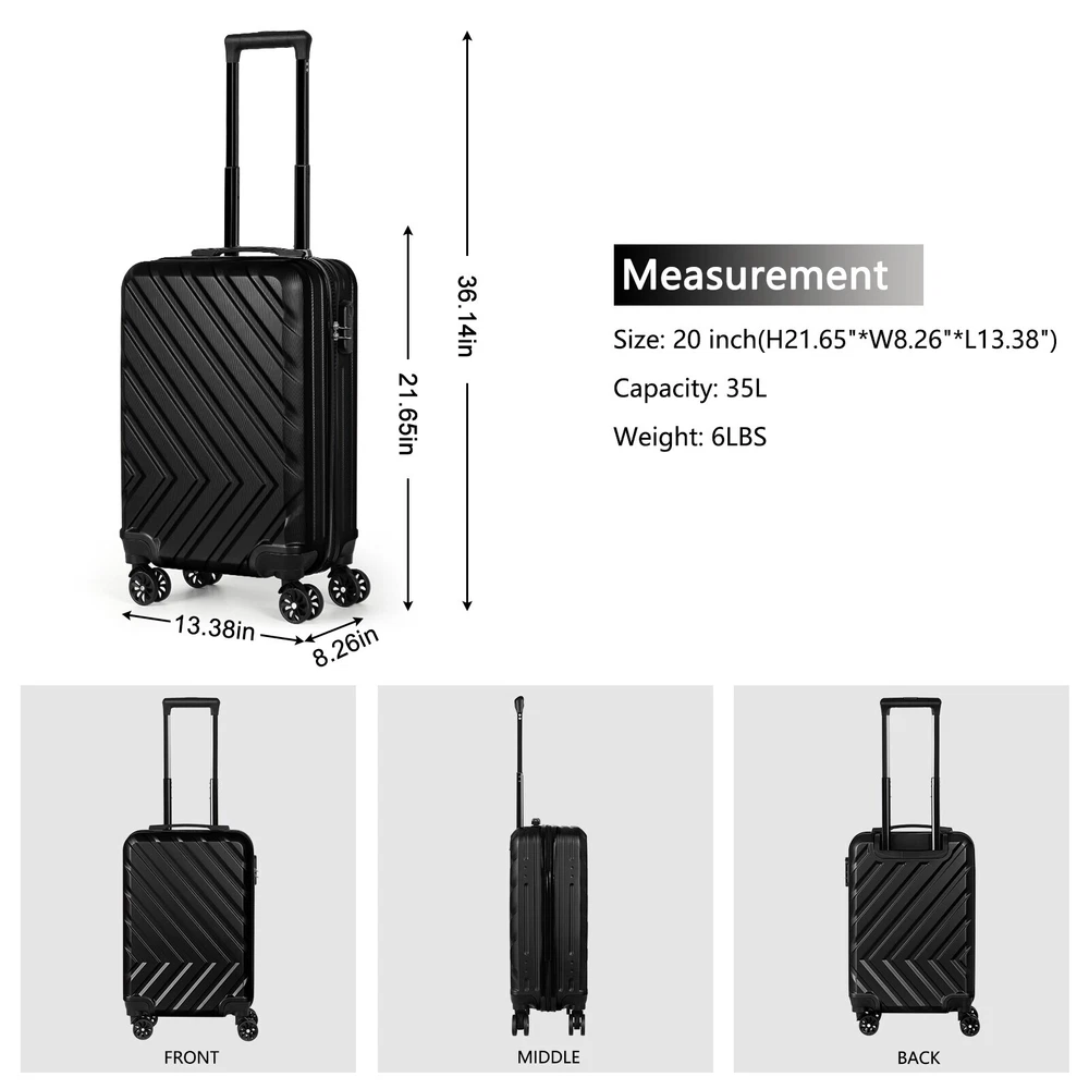 Fly Easy: This 20-inch carry-on luggage meets airline requirements for overhead storage. Seamless travel without check-in hassles! Effortless Glide: Navigate busy terminals with ease. Our carry-on luggage features 360° spinner wheels for smooth gliding and is equipped with a combination lock to enhance luggage security. Pack smart, pack more! With innovative dividers and a mesh sandwich bag, this suitcase optimizes space. The wear-resistant material keeps your belongings safe on the go. Durably Designed: Embrace durability with our ABS material suitcase. Lightweight for lifting, yet robust against the rigors of travel. Trust in luggage that's built to last mile after mile. Convenience on the Go: Designed for the modern traveler, this Carry-On features an adjustable handle with a Free Shipping Over $49.99* Details 20-Inch Carry-On Luggage Product Description: Fly EasyThis 20-inch carry-on luggage meets airline requirements for overhead storage. Seamless travel without check-in hassles! Effortless GlideNavigate busy terminals with ease. Our carry-on luggage features 360° spinner wheels for smooth gliding and is equipped with a combination lock to enhance luggage security. Pack smart, pack more! With innovative dividers and a mesh sandwich bag, this suitcase optimizes space. The wear-resistant material keeps your belongings safe on the go. Durably DesignedEmbrace durability with our ABS material suitcase. Lightweight for lifting, yet robust against the rigors of travel. Trust in luggage that's built to last mile after mile. Convenience on the GoDesigned for the modern traveler, this Carry-On features an adjustable handle with a two-gear lever. Enjoy comfort tailored to your height and travel stress-free.