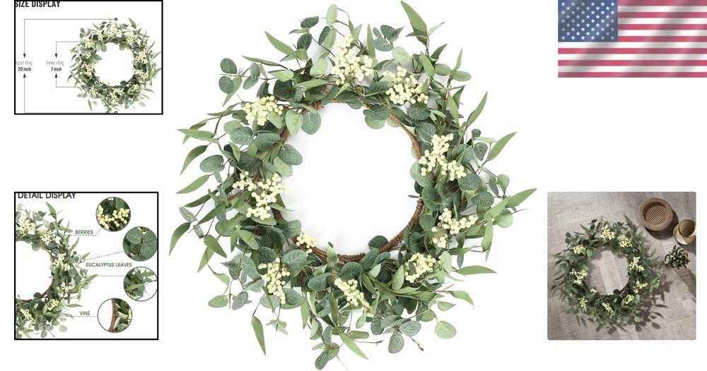 Versatile 20-Inch Eucalyptus Wreath for Front Door and Wall - Customizable Style ‹ › ‹ › ‹ › ‹ › ‹ › ‹ › ‹ › ‹ › ‹ › ‹ › ‹ › Versatile 20-Inch Eucalyptus Wreath - Perfect for Front Door and Wall Decoration - Customizable Style to Suit Your Aesthetic Features: Lifelike Design: Crafted with 3 types of vibrantly colored eucalyptus leaves, enhanced with delicate white berries for a touch of elegance. Durable Construction: Made with silk leaves that never fall and foam berries that never rot, ensuring lasting beauty with minimal maintenance. Ideal Size: Fully expanded, the outer diameter is approximately 20 inches (50 cm) with an inner diameter of about 10 inches (25 cm). Arrives tightly packed for protection but easily adjustable for a stunning display. Versatile Usage: Suitable for every season, allowing personal touches with additional decorative elements. Perfect for weddings, welcome wreaths, or as a charming addition to any room, hotel, or villa. Quality Guarantee: Handcrafted for uniqueness, slight size variations may occur. If you encounter any issues, our dedicated customer service team is ready to assist. Benefits: Transform your space with a stylish, long-lasting decorative wreath. Effortlessly maintain its beauty without the need for water or extensive cleaning. Enhance any area of your home or event with customizable decorations. Craft a unique statement piece that stands out, making it perfect for gifts or personal use. Enjoy a -round delightful ambiance anchored in elegance. Why Choose Our Eucalyptus Wreath? If you're seeking a stunning decorative piece that captures attention without demanding time or effort, look no further than our Versatile 20-Inch Eucalyptus Wreath. Its lifelike appearance and durable materials ensure that it will add beauty to your home or special event for to come. The opportunity to personalize your wreath adds a layer of creativity, making every installation uniquely yours. Enhance your surroundings and welcome guests with this exquisite wreath—order yours today! Shipping Free & Fast Shipping - We offer free shipping to most of the USA with a normal delivery time of 3-7 days. However, due to the current situation, additional delivery time (up to 3 weeks) may be required for some items. Alternative Carriers - We may use alternative carriers (e.g. USPS, FedEx, UPS, etc.) to ensure your package arrives safely and on time. Due to the use of multiple carriers, we are unable to provide a tracking number automatically. Handling Time - Orders are processed and shipped within 1-2 business days of receiving cleared payment. Shipping Restrictions - Shipping to Alaska, Hawaii, Puerto Rico, Guam, and other US territories may incur shipping charges or delivery restrictions. Please contact us before ordering, or your order can be refunded/cancelled. State Restrictions - There may be restrictions based on your state of purchase. For example, certain items may not be shipped to California due to state regulations. Contact for Tracking Updates - If you require tracking updates or have any concerns about the delivery of your order, please feel free to contact us, and we will be happy to assist you. Return 30-Day Hassle-Free Returns - We want you to be completely satisfied with your purchase. If you are not, you can return the item within 30 days of receiving it for a full refund or exchange. Easy Return Process - To start a return, simply contact us and we will provide you with a prepaid return shipping label and detailed instructions. Restocking Fee - There are no restocking fees for returns. However, the buyer is responsible for return shipping costs if the return is not due to a seller's error. Refund Processing Time - Refunds will be processed within 5 business days of receiving the returned item in its condition. Payment We accept all major credit cards, PayPal, and Apple Pay for your convenience. Your payment information is secure and encrypted to ensure a safe and seamless transaction. Please complete your payment within 3 days of purchase to avoid any delays in shipping. Feedback Your feedback is extremely important to us. We strive to provide the best products and customer service possible. If you are satisfied with your purchase, please take a moment to leave us a positive review. If you have any concerns or issues with your order, please contact us before leaving negative feedback. We are committed to resolving any problems and ensuring your satisfaction. Contact Us If you have any questions or concerns, please feel free to out to our customer support team. You can contact us through the eBay messaging system. We are available Monday to Friday, 9:00 am to 5:00 pm EST, and we will do our best to respond to your inquiry within 24 hours. Buy it now and enjoy a pleasant shopping experience! Item Width: Eucalyptus Wreath Unit Quantity: 1.0 count Material: Silk,Foam Common Name: Eucalyptus Product: Eucalyptus Wreath Type: Wreath Artificial/Fresh: Artificial Color: Green Form: Wreath Occasion: All Occasions Size: 20 in Item Height: 20 Inches Number in Pack: 1 Unit Type: Unit