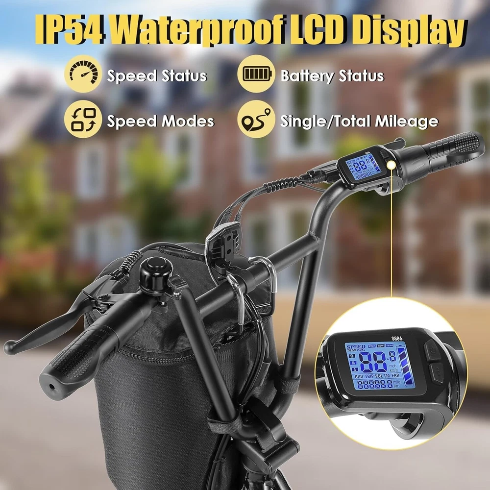 Product Description About this item 【20"X3" Fat Tire】Puncture-proof 20"*3" oversized fat tires can provide superior grip, stability and comfort on various terrains. Whether on sand, mountain roads, snowy roads or various terrains, Caroma electric scooters can bring you a comfortable riding experience. 【Upgraded Brushless Hub Motor】The upgraded 500W(Peak 819W) brushless hub motor has stronger climbing ability. In pure electric mode, it can reach speeds of up to 20MPH(32KM/H) and easily conquer slopes of up to 15 degrees. For all your riding needs. 【Long-lasting Battery Life】High-capacity lithium battery (48V/10.4Ah) certified by UL 2272, which can travel up to 30 miles (48KM) per full charge. Equipped with safe and reliable fast charging technology, it only takes 5-6 hours to fully charge, making it ideal for short trips, picnics, and shopping. 【Off-road Suspension System】The electric scooter is equipped with 2 front fork spring shock absorbers, 2 seat shock-absorbing springs and 2 puncture-resistant 20"X3" fat tires, which can effectively absorb ground impact while riding and provide better control. Combined with front and rear mechanical disc brakes and an EABS system, you can enjoy a comfortable ride and powerful braking, even on steep slopes, rough terrain, or other extreme terrain.