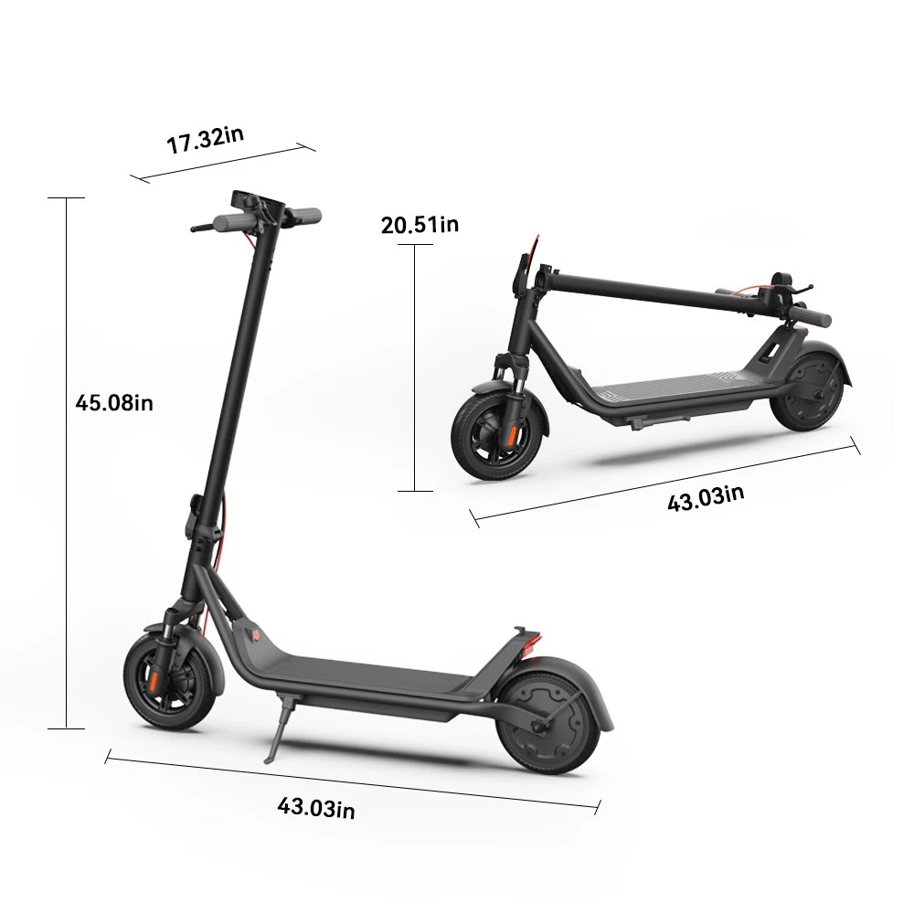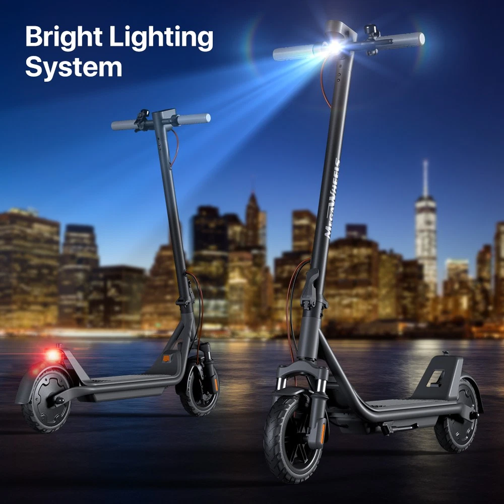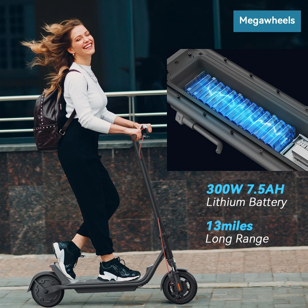 Features: Powerful Motor & Long Battery Life: The electric scooter is equipped with a peak 300W motor. The high-powered motor can easily navigate 10% slopes and is equipped with a 164Wh high-capacity lithium battery with a range of 13 miles, making it ideal for short-distance commuting and trips Safe & Comfortable Riding: This electric scooter adults is equipped with Electronic Brake and Drum Brake. Bright headlight and bell ensure safe riding at night.To ride safely, the electric scooter is equipped with a non-zero start function to ensure safe starting 3 Speed Modes & LED Digital Display: In order to meet the different needs of use from teens to adults, the electric scooter is equipped with 3 speed gears: low speed (3 mph), medium speed (9 mph) and high speed (15 mph). Riders can see real-time speed, speed mode, battery life and light icon with LED display Lightweight & Foldable Design: The adult electric scooter is equipped with one step folding system, and the weight of the electric scooter is only 32.85lbs, which is convenient for you to carry it up and down stairs or into the subway station. Also, it can be placed in the trunk of the car or any compact space. The folded size is 43.03"x17.32"x20.51" SMART APP CONTROL: Lets you lock and unlock these folding electric scooters for adults and monitor their riding status using the Tuya app. Enhanced Safety Features: Safety is a top priority with the A1C electric scooter. It comes with ultra-bright headlights, taillights, and a bell to enhance visibility and alert others to your presence, especially during nighttime rides. The scooter also features sensitive Electronic Brake and Drum Brake, providing reliable stopping power and reducing the risk of accidents. It is UL 2272 Certified. Warm Tips - The speed and range of electric scooters vary depending on weight, surface, temperature, battery and riding style. If you have any questions, please contact us Specification: Brand: Megawheels Model: A1C Dimension: Unfolding 43.03×17.32×45.08 in; Folding: 43.03×17.32×20.51 in Net Weight: 32.85lb Color: Black Tires: 8.5" Front & Rear Solid Tire Max Load: 100kg Max speed: approx.25KM/h Speed level: Gear 1--Max 3 MPH ; Gear 2--Max 9 MPH; Gear 3--Max 15 MPH Mileage: Approx. 13 miles Grade Ability: 10% Working Temperature: -10°C to 45 °C Storage Temperature: -20°C to 25°C Battery Capacitiy: 7.5 Ah Rated Power: 300W Charger Input Voltage: 100V-240V Charger Frequent: 50Hz/60Hz Charging time: approx. 5.5 hours Package : 1 * Electric Scooter 1 * Battery Charger 1 * User's Manual Note: This products have been certified under UL2272 safety standards. On Jul 16, 2025 at 20:15:12 PDT, seller added the following information:
