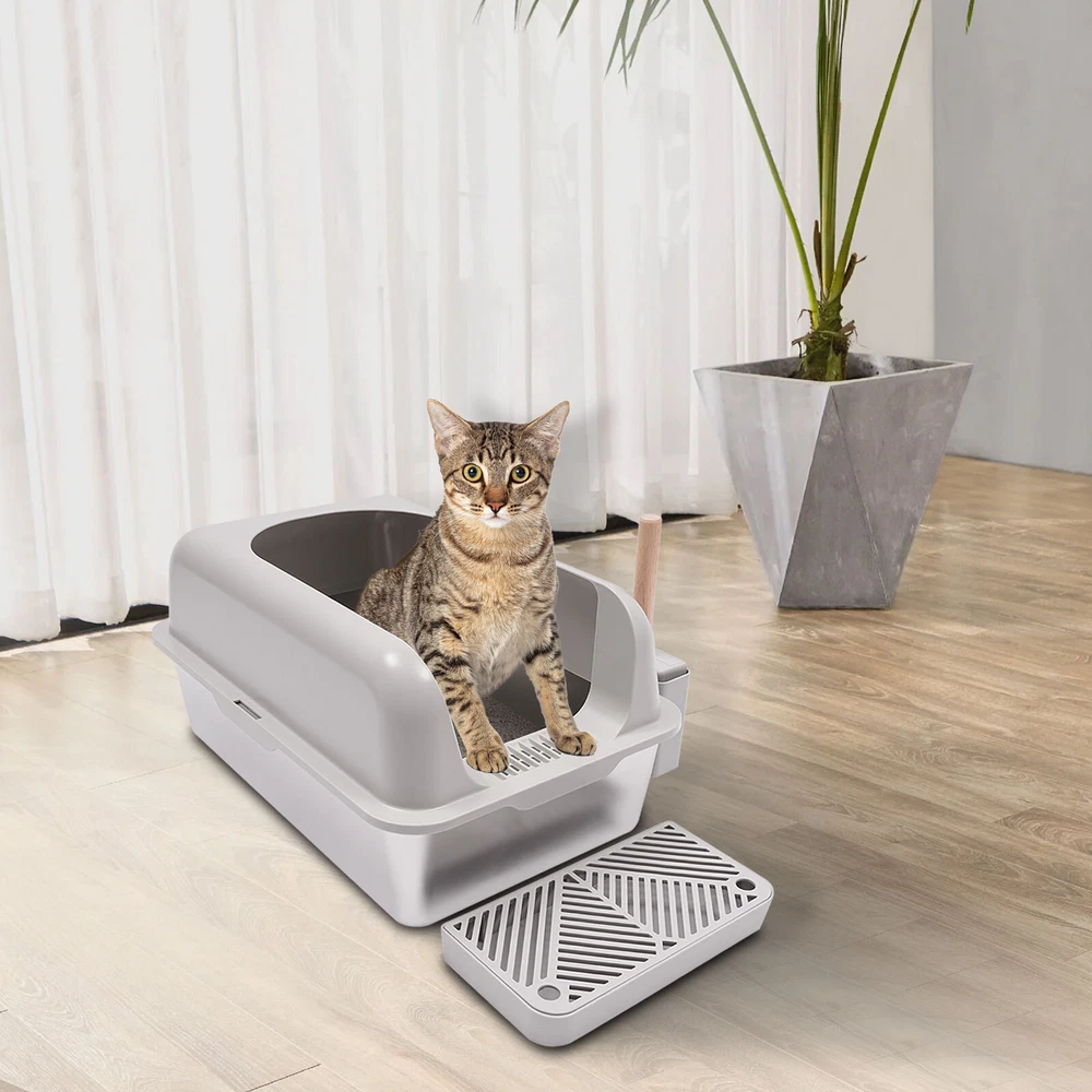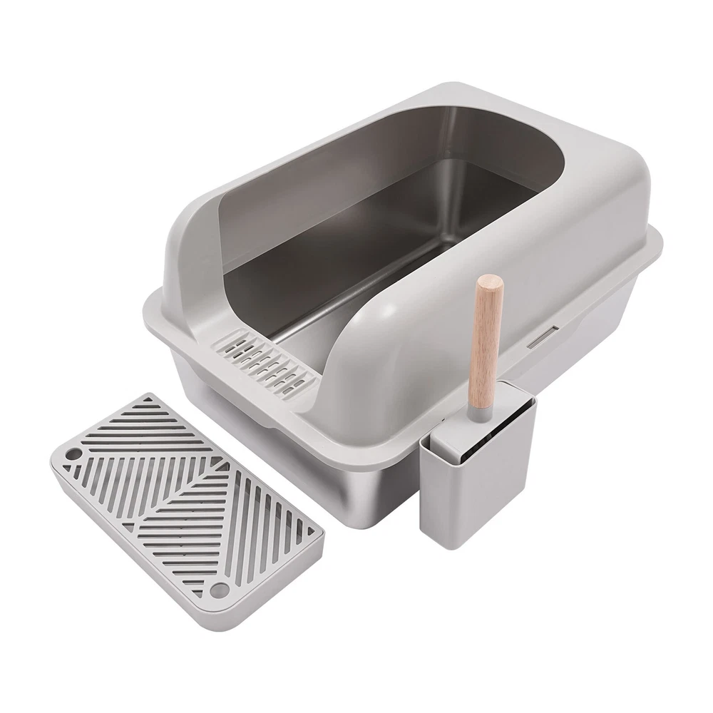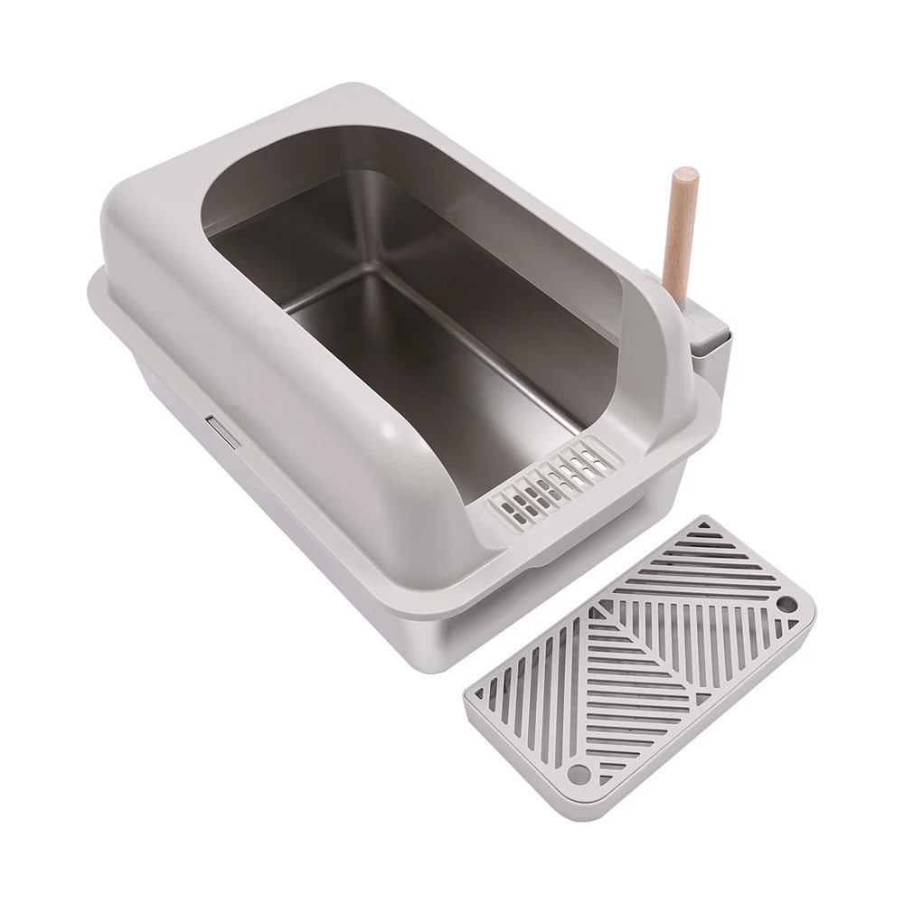 1. Wow, this litter box is a total game-changer! The stainless steel is so easy to clean and the high guardrail really keeps the mess contained. It feels incredibly sturdy and modern, and my cat seems to love the extra space. Highly recommend!