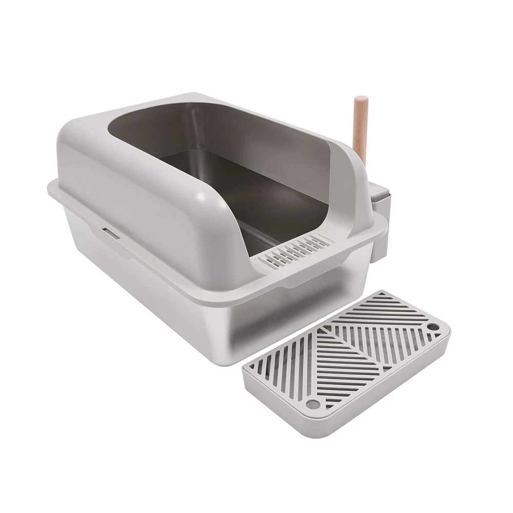 20L Stainless Steel Cat Litter Box with Guardrail & Scoop