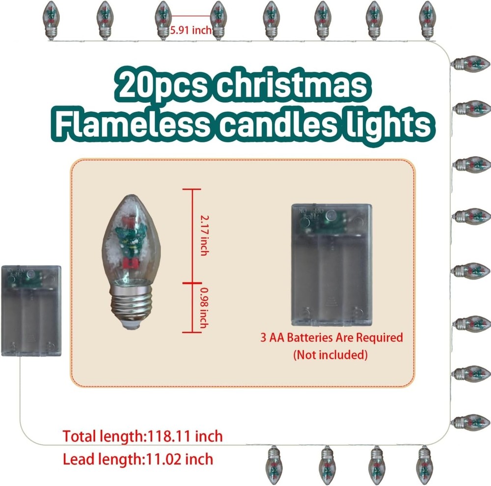20PC Christmas Lights for Indoor Bedroom Decorations - 20 LED Globe Yellow Product Details Color: Yellow Brand: Jauksrola Indoor/Outdoor Usage: Outdoor, Indoor Special Feature: Color Changing Light Source Type: LED Power Source: Battery Powered Light Color: Yellow, Orange Theme: Easter, Christmas, Thanksgiving Occasion: Easter, Christmas, New Year, Anniversary, Birthday Style: Classic Material: Plastic Controller Type: Touch Control Number of Light Sources: 20 Bulb Shape Size: G30 Included Components: bulb Number of Items: 1 Control Method: Touch Water Resistance Level: Waterproof Seasons: All Seasons Form Factor: String Lights Manufacturer: Jauksrola Part Number: W-003 Item Weight: 13.4 ounces Package Dimensions: 7.72 x 4.69 x 4.53 inches Country of Origin: China Item model number: W-003 Special Features: Color Changing Batteries Included?: No Batteries Required?: Yes Package Dimensions : 7.72 x 4.69 x 4.53 inches; 13.44 ounces Item model number : W-003 Manufacturer : Jauksrola Country of Origin : China Color: Yellow Brand: Jauksrola Indoor/Outdoor Usage: Outdoor, Indoor Special Feature: Color Changing Light Source Type: LED Power Source: Battery Powered Light Color: Yellow, Orange Theme: Easter, Christmas, Thanksgiving Occasion: Easter, Christmas, New Year, Anniversary, Birthday Style: Classic 【Christmas Decoration】This cute snow string light is the perfect decoration for Christmas, each bulb is filled with delicate faux pine, snow, and lovely decorations, you can use them for the bedroom, fireplace, windows, curtains docoration to create a warm festive atmosphere 【Premium Quality】 This is the upgraded version we use high-quality acrylic instead of glass which makes them more practical, you don't need to worry about breaking it when you use it, more durable and waterproof, safer and lighter. 【Battery Powered & 2modes】This snow string light requires 3 AA battery operated (Battery Not Included), so you can decorate it anywhere indoor or outdoor. 【Christmas Lights Outdoor/Indoor】 Snow Scene Christmas lights can be used as Indoor and outdoor decorations. Such as bedroom, living room, kitchen, dining rooms, windows, patio, corridor, party, school, and shop. This will be the warmest light of your Christmas. 【WARM TIPS】 the little figure of the bulb may be slightly reversed during the shipping tour. Because it’s movable, You can jiggle the bulbs slightly to straighten them, or you can unscrew the bulbs and use tweezers to adjust the ornaments into the correct position.