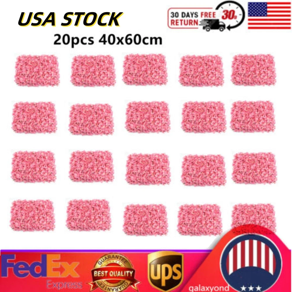 20PCS 16" x 24" Artificial Silk Flower Wall Panel Wedding Backdrop Floral Decor
