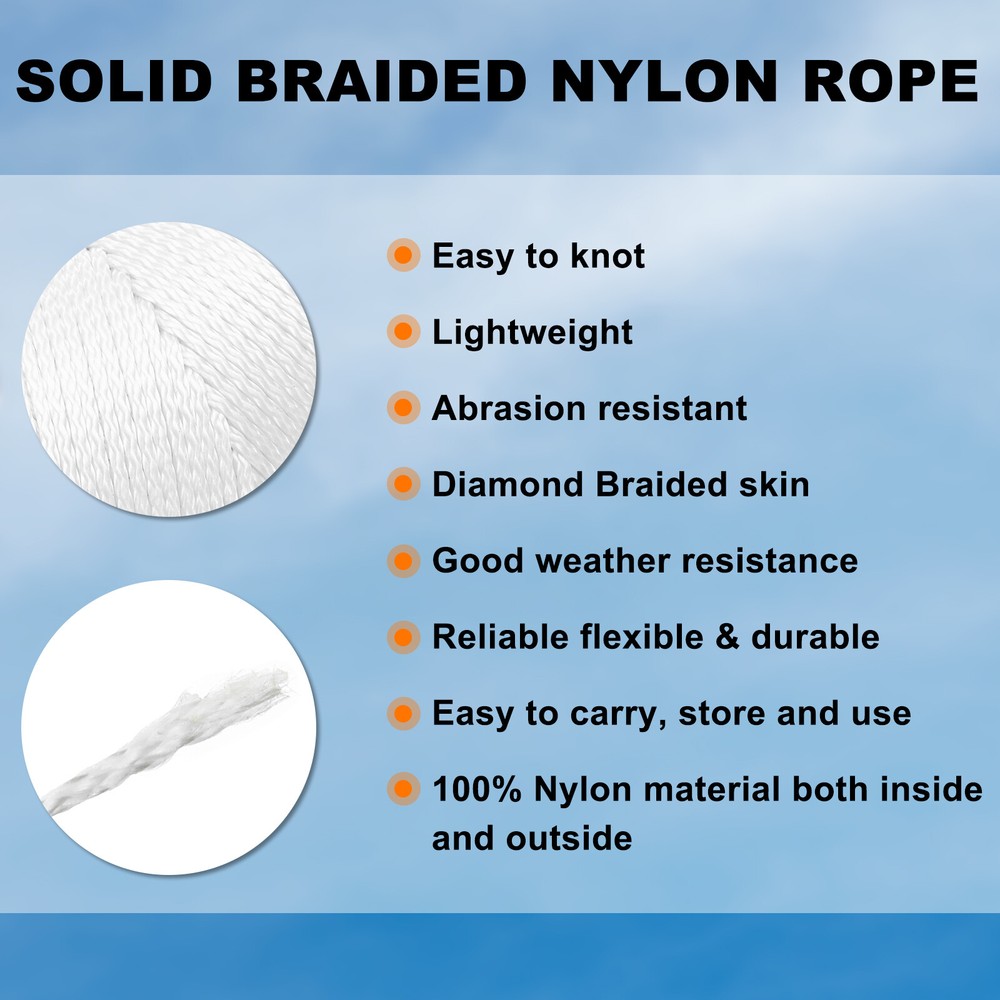 Document Solid braid utility rope is made of nylon, which has good abrasion resistance, is not easily broken by friction or wear, has good resistance to chemicals and corrosive substances, and is suitable for use in harsh environments.Unlike polyester fiber, nylon braided rope has stretchability to absorb energy, can withstand large weight and tension, and has a certain softness and elasticity, which is easy to carry, store and use. Nylon rope has good weather resistance and can be used outdoors for a longer time.Lightweight and affordable multi-purpose nylon rope, which can be used on your farm, boat, ranch, construction site or home, is perfect for camping, climbing, boating and any other indoor outdoor activities.Notice: Regularly check the surface of the nylon rope for obvious wear or cracks. If there is any wear, it should be replaced in time. It should be stored in a dry and ventilated place, away from direct sunlight and humid environment to avoid aging and hardening. 20PCS Solid Braid Nylon Rope 3/50 Inch 500 Ft Utility Flag Pole Rope White Solid braid utility rope is made of nylon, which has good abrasion resistance, is not easily broken by friction or wear, has good resistance to chemicals and corrosive substances, and is suitable for use in harsh environments. Unlike polyester fiber, nylon braided rope has stretchability to absorb energy, can withstand large weight and tension, and has a certain softness and elasticity, which is easy to carry, store and use. Nylon rope has good weather resistance and can be used outdoors for a longer time. Lightweight and affordable multi-purpose nylon rope, which can be used on your farm, boat, ranch, construction site or home, is perfect for camping, climbing, boating and any other indoor outdoor activities. Notice: Regularly check the surface of the nylon rope for obvious wear or cracks. If there is any wear, it should be replaced in time. It should be stored in a dry and ventilated place, away from direct sunlight and humid environment to avoid aging and hardening. Hot Item Payment 1.We accept eBay payment . 2.Payment must be received within 7 business days of auction closing. Shipping 1.We ship to your eBay or Paypal address. Please make sure your eBay and Paypal address is correct before you pay. 2.Items will be shipped within 1-3 business day when we received payment. 3.Delivery time depends on destination and other factors. Description Policy 20PCS Solid Braid Nylon Rope 3/50 Inch 500 Ft Utility Flag Pole Rope White Solid braid utility rope is made of nylon, which has good abrasion resistance, is not easily broken by friction or wear, has good resistance to chemicals and corrosive substances, and is suitable for use in harsh environments. Unlike polyester fiber, nylon braided rope has stretchability to absorb energy, can withstand large weight and tension, and has a certain softness and elasticity, which is easy to carry, store and use. Nylon rope has good weather resistance and can be used outdoors for a longer time. Lightweight and affordable multi-purpose nylon rope, which can be used on your farm, boat, ranch, construction site or home, is perfect for camping, climbing, boating and any other indoor outdoor activities. Notice: Regularly check the surface of the nylon rope for obvious wear or cracks. If there is any wear, it should be replaced in time. It should be stored in a dry and ventilated place, away from direct sunlight and humid environment to avoid aging and hardening. Hot Item Payment 1.We accept eBay payment . 2.Payment must be received within 7 business days of auction closing. Shipping 1.We ship to your eBay or Paypal address. Please make sure your eBay and Paypal address is correct before you pay. 2.Items will be shipped within 1-3 business day when we received payment. 3.Delivery time depends on destination and other factors.
