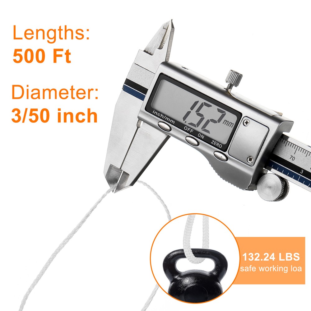 20PCS 3/50 Inch 500 Ft White Braided Nylon Utility Rope for Flag Poles