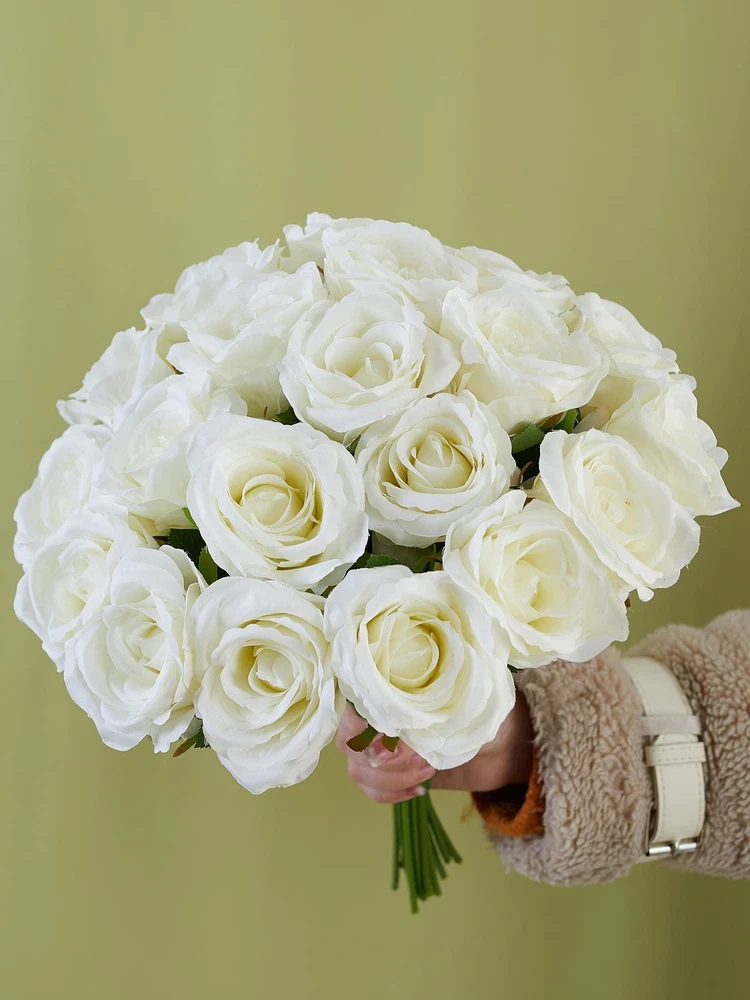 Artificial flowers Fake Roses Packaging and size: A set includes 20pcs artificial roses, its height is 15.8in/40cm, diameter is 2.8in/7.12cm. High-grade material: The white artificial rose bouquet is made of high-quality silk, plastic and metal wire, so it can be bent freely, and can be adjusted in height and shape. Easy to maintain: The flowers and leaves of the wedding rose bouquet are very realistic and feel real. They will not fade, require no care, and have no peculiar smell. Various decorations: very suitable for weddings, Halloween parties, families, birthdays, Valentine's Day and any other places you want to decorate. Reminder: Artificial flowers may be squeezed and deformed during transportation, but they can be restored to their original shape after a little adjustment.