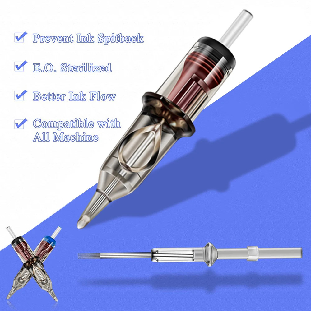 These tattoo needles are a game-changer! Super sharp, smooth application, and the variety of sizes covers all my needs. Sterilized and securely packaged—no worries about contamination. The plastic cartridges are sturdy, and the stainless steel needles glide effortlessly. Perfect for both beginners and pros. Highly recommend for consistent, clean lines and shading. Great value for the quality!
