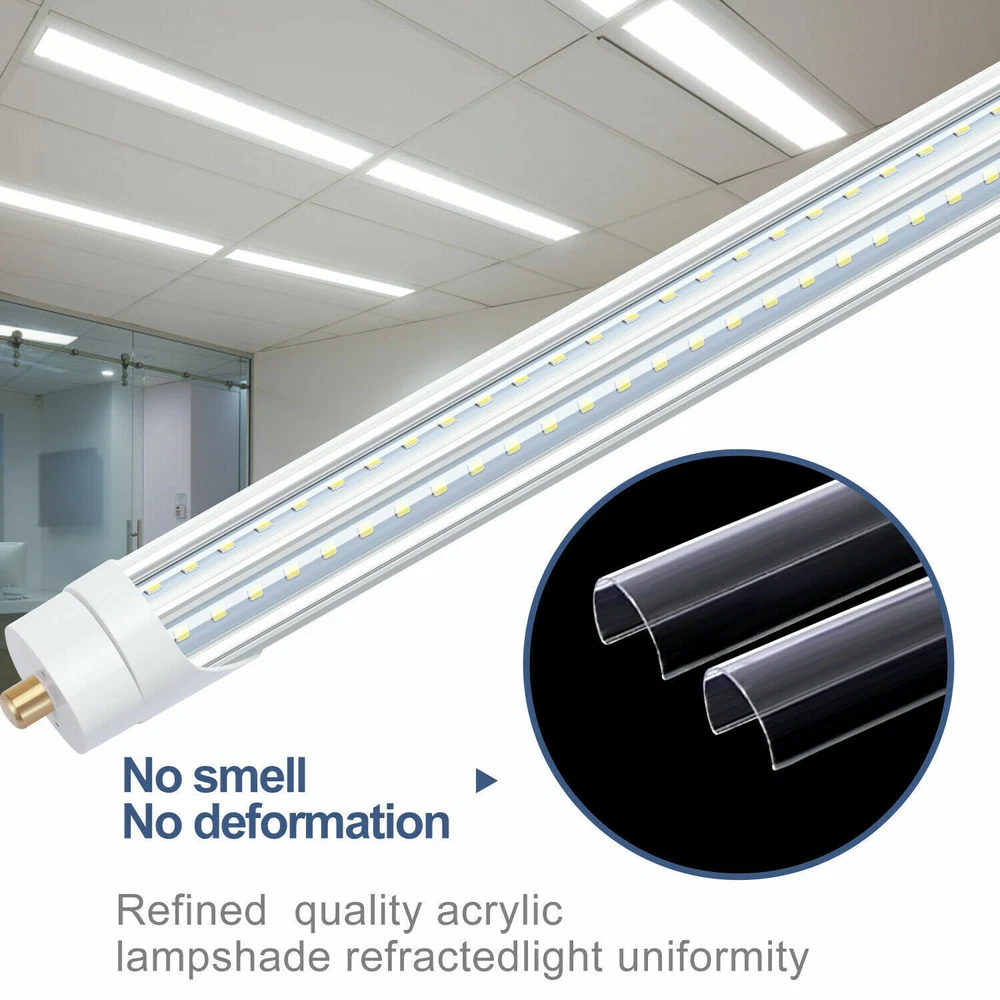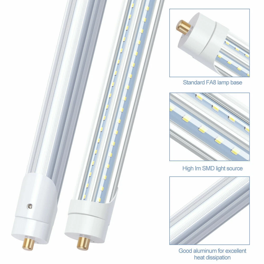 Specification: Model Name: V SHAPED FA8 T8 LED Tube Light Double end Power Length: 8FT / 96Inch Base: FA8 Voltage: AC85-277V LED Source: 2835SMD LED Quantity: 576pcs Power: 90W Lumen: 120LM/W Housing material: Aluminum Drive: Built-in drive PC cover: Clear Life: 50,000 hours Color temperature: 6000K Warranty: 3 Years Special note: Please remove the starter and ballast before Installation. 20Pack 90W 8 Foot Led Shop Light T8 T12 Single Pin FA8 8FT Led Tube Light Bulbs Specification: Model Name: V SHAPED FA8 T8 LED Tube Light Double end Power Length: 8FT / 96Inch Base: FA8 Voltage: AC85-277V LED Source: 2835SMD LED Quantity: 576pcs Power: 90W Lumen: 120LM/W Housing material: Aluminum Drive: Built-in drive PC cover: Clear Life: 50,000 hours Color temperature: 6000K Warranty: 3 Years Special note: Please remove the starter and ballast before Installation. ▶ Question: Do I need to bypass the ballast for this FA8 Single pin tube? ▶ Answer: Yes, please remove the starter and ballast before Installation. ▶ Question: Is it single end powered or dual end powered? ▶ Answer: It is dual end powered for this 8ft FA8 bulb. ▶ Question: This is FA8 single pin tube or R17D HO tube? ▶ Answer: This is FA8 single pin tube ▶ Question: Can we replace our T12 fluorescent tube with this FA8 bulbs? ▶ Answer: Yes! It can replace traditional T8 T10 T12 fluorescent bulbs. Easy Installation: Remove Fluorescent Tube Remove the Ballast Open\Remove Wiring Compartment Cover Connect the wires as shown in the installation manual ( Bypass Ballast & Starter) Payment Delivery details Terms of sales About us Contact us Payment 1.We only accept payment by Paypal. 2.If you pay by paypal with E-check, it normally takes 5 business days to clear, Once your E-check payment clears, your item will be dispatched within 1-2 working days. 3.Payment must be received within 7 days after the auction ended. Delivery details 1.All orders ship within 24 hours after receiving your payment. 2. Fedex shipping from our US warehouse, takes about 3-5business days for delivery. 3.Please verify your address during checkout. We are not responsible for any wrong or undeliverable addresses. Terms of sales We strive to ensure 100% satisfaction for each and every one of our customers. we offer a 30-day 100% money-back guarantee on all eBay orders. If your item isn't just as you wished, simply send it back to us and we'll refund or replace your item. Please note that all returns must be authorized by our Customer Service department. please contact us though message first if you have any problem . About us 1.Our working time is Monday to Friday. 9.30-18.30 BeiJing time am. 2.We will reply you within 24 hours(1work days). 3.We are always been trying to provide best service and reliable products for every customer. Contact us 1. If you are dissatisfied for any reason, please do not be quick to leave negative/neutral feedback. We work hard to make sure EVERY CUSTOMER 100% SATISFIED and resolve any problem for you and always leave positive feedback to all our customers. 2. If you are satisfied with the product you received,please leave us positive feedback and 5 scores DSR.