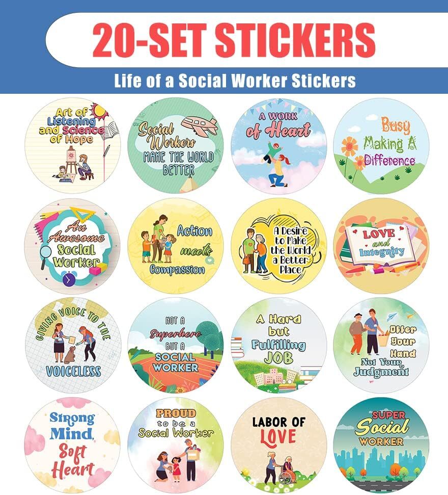 16 UNIQUE DESIGNS INSPIRING STICKERS FOR YOUR DIY PERSONALIZED DECORATIONS - These colorful and uniquely inspiring round shaped stickers are the best tool for DIY decoration and personalization of your belongings. GREAT STOCKING STUFFERS, SCHOOL CORPORATE TEACHING SUPPLEMENTARY MATERIALS, AND INCENTIVE GIFTS - Great rewards giveaways for Boys Girls, Kids, Teens, Children, Adults, Professionals. A perfect design to give during guidance sessions, classroom activities, school giveaways, birthdays, anniversaries, family day, and any other special occasions. MADE WITH DURABLE AND WATERPROOF MATERIALS - There is a lamination or coating to make the stickers high water resistant, and WILL NOT fade from the water. The stickers can stick it anywhere you like, and it sticks there and lasts a long time. A COLORFUL AND DECOR STICKER DECAL - Each sheet with 16 individual round stickers. There are 20 Sheets, with a total of 320 pieces of stickers. STICKER SIZE: 1.5 INCHES IN DIAMETER Life of a Social Worker Stickers (20 Sets X 16 Designs) COLORFUL AND COLLECTION OF TEXT STICKERS • Well designed. • Very encouraging. • Self-adhesive. Life of a Social Worker Stickers (20 Sets X 16 Designs) are super fun to collect; you can't have just one! That's why you will find a selection of stickers right here. Each package comes with different stickers in a variety of designs. Stick them here, stick them there, stick them everywhere! Everyone will love these self-adhesive stickers. These colorful stickers are perfect for any adults and these come with very inspiring messages and bright pictures. A fun, inexpensive way to add a decorative, notes, and stationery. Delight yourself with uplifting messages designs that are very encouraging. Life of a Social Worker Stickers (20 Sets X 16 Designs) perfect for giveaways, behavior incentives, prizes! These stickers are acid-free, nontoxic, and safe for use on photos. This product comes with a 60 days money back guarantee. You can return them to us for a full refund.