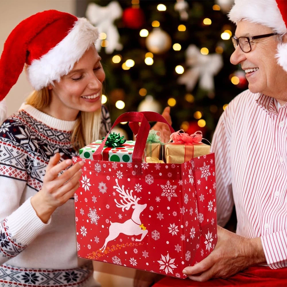 20Pc Christmas Gift Tote Bags 10 Styles Xmas Treat Non Woven Bags Reusable Large