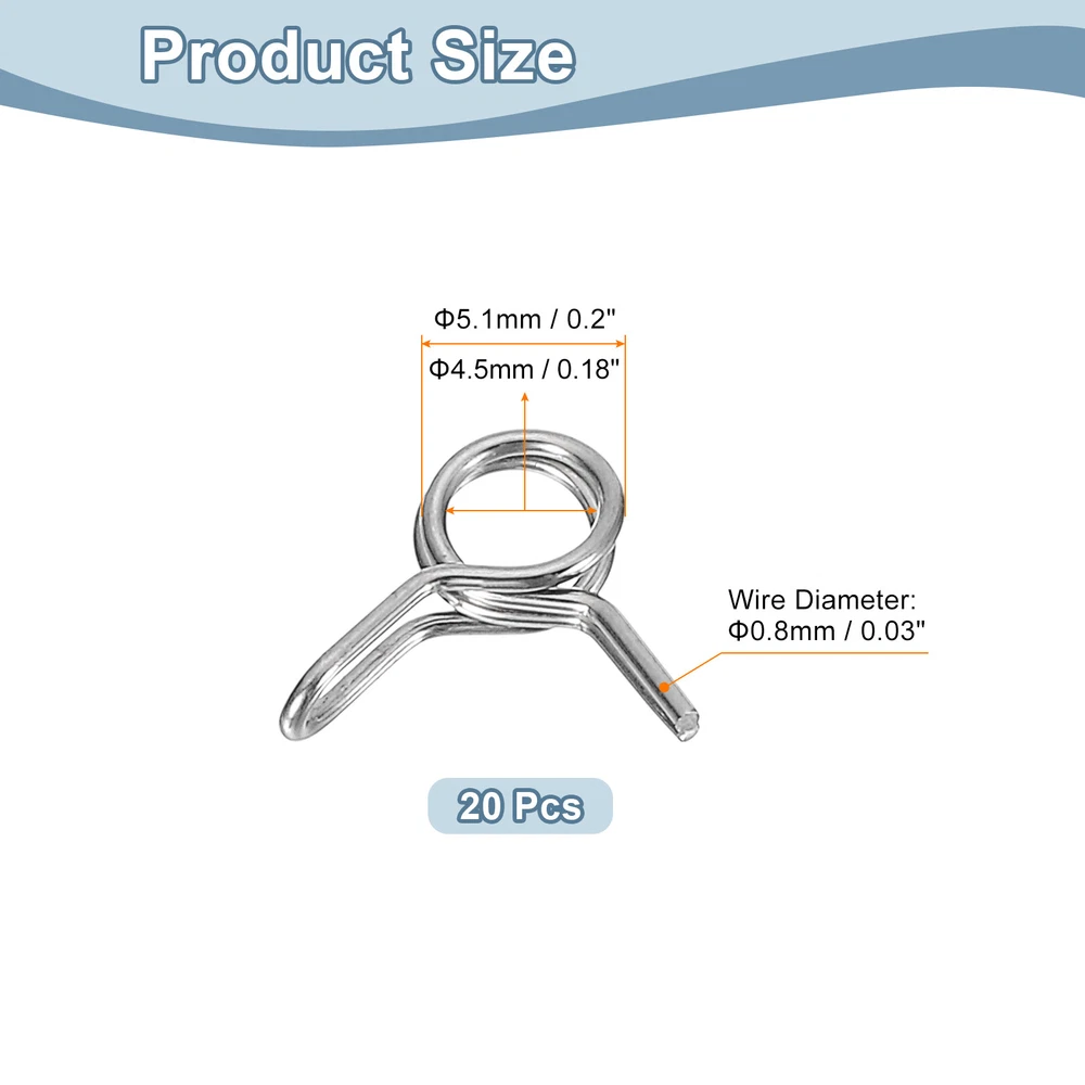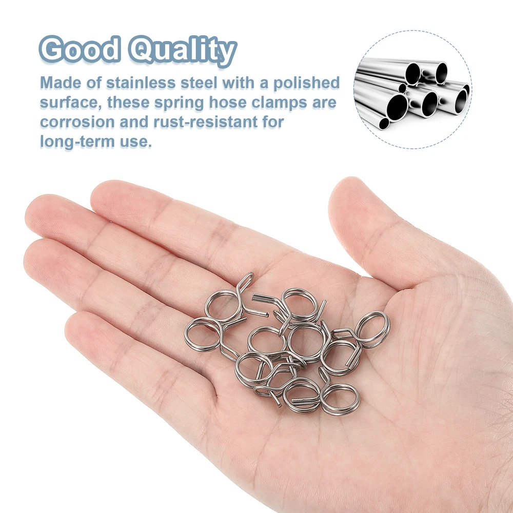 Document Description: Material: Made of stainless steel with a polished surface, these spring hose clamps are corrosion and rust-resistant for long-term use.Design: The spring hose clamps are designed with double-wound wire, which can spread the clamping force around the hose, and is more cost-effective than single-wire clamps.Easy to Use: These spring hose clamps are very easy to use, just use pliers to open the clamp and easily place it on the pipe.Wide Application: Spring hose clamps are widely used in automotive, agricultural, factory, and construction industries. Mainly used for fastening interfaces, they can firmly lock power equipment fuel lines, air hoses, water pipes, silicone hoses, vacuum hoses, automobile fuel lines, motorcycle air pipes, etc.Specification:Material: Stainless SteelFinish: PolishedInner Diameter: 4.5mm / 0.18inchMaximum Open Inner Diameter: 5.1mm/0.2inchWire Diameter: 0.8mm / 0.03inchPackage Content: 20pcs x Spring Hose Clamp Double Wire Spring Hose Clamp, 20pcs 304 Stainless Steel 6mm Spring Clips USD 7.78 Double Wire Spring Hose Clamp, 10pcs 304 Stainless Steel 5.5mm Spring Clips USD 6.71 Double Wire Spring Hose Clamp, 20pcs 304 Stainless Steel 5mm Spring Clips USD 7.49 Spring Hose Clamp, 10pcs 65Mn Steel 9mm Low Pressure Air Clip, Nickel Plated USD 7.03 Fuel Line Hose Clips, 20pcs 11mm 65Mn Steel Tubing Spring Clamps (Silver) USD 7.22 Fuel Line Hose Clips, 5pcs 55mm 65Mn Steel Tubing Spring Clamps USD 8.67 20Pcs 0.18-0.2 Inch Double Wire Spring Hose Clamp, Adjustable Spring Clips Description: Material: Made of stainless steel with a polished surface, these spring hose clamps are corrosion and rust-resistant for long-term use. Design: The spring hose clamps are designed with double-wound wire, which can spread the clamping force around the hose, and is more cost-effective than single-wire clamps. Easy to Use: These spring hose clamps are very easy to use, just use pliers to open the clamp and easily place it on the pipe. Wide Application: Spring hose clamps are widely used in automotive, agricultural, factory, and construction industries. Mainly used for fastening interfaces, they can firmly lock power equipment fuel lines, air hoses, water pipes, silicone hoses, vacuum hoses, automobile fuel lines, motorcycle air pipes, etc. Specification: Material: Stainless Steel Finish: Polished Inner Diameter: 4.5mm / 0.18inch Maximum Open Inner Diameter: 5.1mm/0.2inch Wire Diameter: 0.8mm / 0.03inch Package Content: 20pcs x Spring Hose Clamp Hot Item Fuel Line Hose Clips, 100pcs 11mm 65Mn Steel Tubing Spring Clamps USD 12.35 Fuel Line Hose Clips, 100pcs 3mm 304 Stainless Steel Tube Spring Clamps(Silver) USD 12.2 Fuel Line Hose Clips, 20pcs 4mm 65Mn Steel Tubing Spring Clamps USD 7.42 Fuel Line Hose Clips, 20pcs 25mm 304 Stainless Steel Tube Spring Clamps(Silver) USD 9.27 Double Wire Spring Hose Clamp, 50pcs 304 Stainless Steel 10mm Spring Clips USD 11.2 Payment We accept eBay payment. Please do not email us to ask for other payment option. We appreciate prompt payment and look forward to your business in the future. Unpaid item will be filed without receiving payment in 7 days from listing ended. Shipping Usually we ship your order out within 24 hours in business day. For shipping and handling charges (S&H) for specific item, please refer to the item listing page for more details. Please make sure your shipping address is correct. We are not responsible for any loss in transit if a wrong address is provided. Return Policy Returns for exchange are permitted and must be initiated by the buyer within 30 days upon receipt. If you would like to return your product(s) for repair / replacement / refund, please kindly contact our customer service representatives via email for an authorized RMA number. Your returned product(s) will not be processed without a completed RMA. About Us We are continually expanding our product selection to better serve your need. We look forward to providing the best sevice to you - our dear customers, so take a look around our store and find the product that you want. You can put your trust in us! If you need any help or have any suggestions, please don't hesititate to contact us anytime , we will reply you within 24 hours and try the best to help you. Description Policy 20Pcs 0.18-0.2 Inch Double Wire Spring Hose Clamp, Adjustable Spring Clips Description: Material: Made of stainless steel with a polished surface, these spring hose clamps are corrosion and rust-resistant for long-term use. Design: The spring hose clamps are designed with double-wound wire, which can spread the clamping force around the hose, and is more cost-effective than single-wire clamps. Easy to Use: These spring hose clamps are very easy to use, just use pliers to open the clamp and easily place it on the pipe. Wide Application: Spring hose clamps are widely used in automotive, agricultural, factory, and construction industries. Mainly used for fastening interfaces, they can firmly lock power equipment fuel lines, air hoses, water pipes, silicone hoses, vacuum hoses, automobile fuel lines, motorcycle air pipes, etc. Specification: Material: Stainless Steel Finish: Polished Inner Diameter: 4.5mm / 0.18inch Maximum Open Inner Diameter: 5.1mm/0.2inch Wire Diameter: 0.8mm / 0.03inch Package Content: 20pcs x Spring Hose Clamp Double Wire Spring Hose Clamp, 20pcs 304 Stainless Steel 6mm Spring Clips USD 7.78 Double Wire Spring Hose Clamp, 10pcs 304 Stainless Steel 5.5mm Spring Clips USD 6.71 Double Wire Spring Hose Clamp, 20pcs 304 Stainless Steel 5mm Spring Clips USD 7.49 Spring Hose Clamp, 10pcs 65Mn Steel 9mm Low Pressure Air Clip, Nickel Plated USD 7.03 Fuel Line Hose Clips, 20pcs 11mm 65Mn Steel Tubing Spring Clamps (Silver) USD 7.22 Fuel Line Hose Clips, 5pcs 55mm 65Mn Steel Tubing Spring Clamps USD 8.67 Hot Item Fuel Line Hose Clips, 100pcs 11mm 65Mn Steel Tubing Spring Clamps USD 12.35 Fuel Line Hose Clips, 100pcs 3mm 304 Stainless Steel Tube Spring Clamps(Silver) USD 12.2