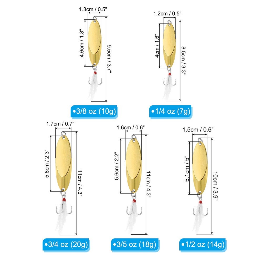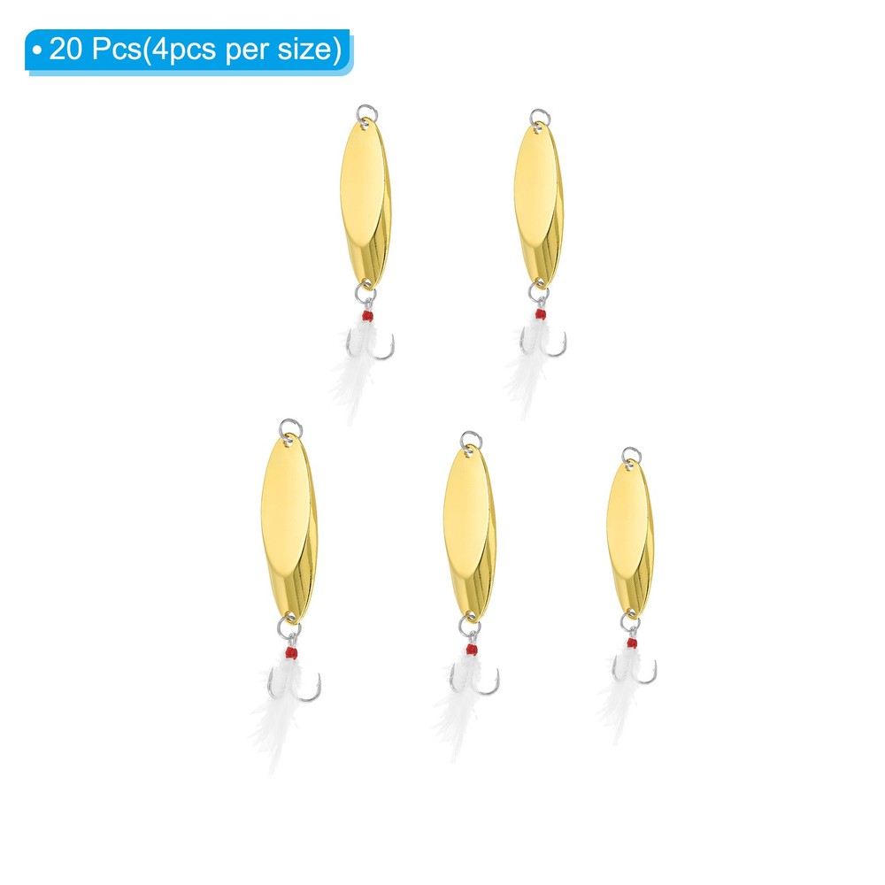 Document Fishing spoons are used as lures in fishing activities. They are designed to simulate baitfish and attract the attention of fish. The reflective properties and vibrating movements of lure spoons make them effective in enticing fish to bite. They can be used in various fishing environments, including freshwater lake, river, and ocean, and are suitable for targeting a wide range of fish species, such as bass, trout, etc.SpecificationColor: Gold ToneMaterial: AlloyWeight: 1/4 oz (7g), 3/8 oz (10g), 1/2 oz (14g), 3/5 oz (18g), 3/4 oz (20g)Packing List: 20Pcs x Fishing Spoons Lures (4pcs per size)AdvantageThe casting spoon is made of durable alloy, which is sturdy, rustproof and corrosion-resistant. It has a good reflective effect, which can quickly attract fish and increase the chance of successfully biting the hook. The hook is keen and barbed, making it difficult for fish to escape.Fishing spoons are often engineered with a balanced weight and aerodynamic design, allowing for long-distance casting and quick sinking to the desired fishing zone.InstructionConnect the fishing spoon to the end of your fishing line. You can quick retrieval or slow swinging to simulate the behavior of small fish. Observe the fish's response and make corresponding adjustments to your actions.Note: Please confirm the required size before purchase. 20Pcs Metal Fishing Spoons Fishing Lures Treble Hooks Jigs, 5 Sizes Gold Tone Fishing spoons are used as lures in fishing activities. They are designed to simulate baitfish and attract the attention of fish. The reflective properties and vibrating movements of lure spoons make them effective in enticing fish to bite. They can be used in various fishing environments, including freshwater lake, river, and ocean, and are suitable for targeting a wide range of fish species, such as bass, trout, etc. Specification Color: Gold Tone Material: Alloy Weight: 1/4 oz (7g), 3/8 oz (10g), 1/2 oz (14g), 3/5 oz (18g), 3/4 oz (20g) Packing List: 20Pcs x Fishing Spoons Lures (4pcs per size) Advantage The casting spoon is made of durable alloy, which is sturdy, rustproof and corrosion-resistant. It has a good reflective effect, which can quickly attract fish and increase the chance of successfully biting the hook. The hook is keen and barbed, making it difficult for fish to escape. Fishing spoons are often engineered with a balanced weight and aerodynamic design, allowing for long-distance casting and quick sinking to the desired fishing zone. Instruction Connect the fishing spoon to the end of your fishing line. You can quick retrieval or slow swinging to simulate the behavior of small fish. Observe the fish's response and make corresponding adjustments to your actions. Note: Please confirm the required size before purchase. Hot Item Payment 1.We accept eBay payment . 2.Payment must be received within 7 business days of auction closing. Shipping 1.We ship to your eBay or Paypal address. Please make sure your eBay and Paypal address is correct before you pay. 2.Items will be shipped within 1-3 business day when we received payment. 3.Delivery time depends on destination and other factors. Description Policy 20Pcs Metal Fishing Spoons Fishing Lures Treble Hooks Jigs, 5 Sizes Gold Tone Fishing spoons are used as lures in fishing activities. They are designed to simulate baitfish and attract the attention of fish. The reflective properties and vibrating movements of lure spoons make them effective in enticing fish to bite. They can be used in various fishing environments, including freshwater lake, river, and ocean, and are suitable for targeting a wide range of fish species, such as bass, trout, etc. Specification Color: Gold Tone Material: Alloy Weight: 1/4 oz (7g), 3/8 oz (10g), 1/2 oz (14g), 3/5 oz (18g), 3/4 oz (20g) Packing List: 20Pcs x Fishing Spoons Lures (4pcs per size) Advantage The casting spoon is made of durable alloy, which is sturdy, rustproof and corrosion-resistant. It has a good reflective effect, which can quickly attract fish and increase the chance of successfully biting the hook. The hook is keen and barbed, making it difficult for fish to escape. Fishing spoons are often engineered with a balanced weight and aerodynamic design, allowing for long-distance casting and quick sinking to the desired fishing zone. Instruction Connect the fishing spoon to the end of your fishing line. You can quick retrieval or slow swinging to simulate the behavior of small fish. Observe the fish's response and make corresponding adjustments to your actions. Note: Please confirm the required size before purchase. Hot Item Payment 1.We accept eBay payment . 2.Payment must be received within 7 business days of auction closing. Shipping 1.We ship to your eBay or Paypal address. Please make sure your eBay and Paypal address is correct before you pay. 2.Items will be shipped within 1-3 business day when we received payment. 3.Delivery time depends on destination and other factors.