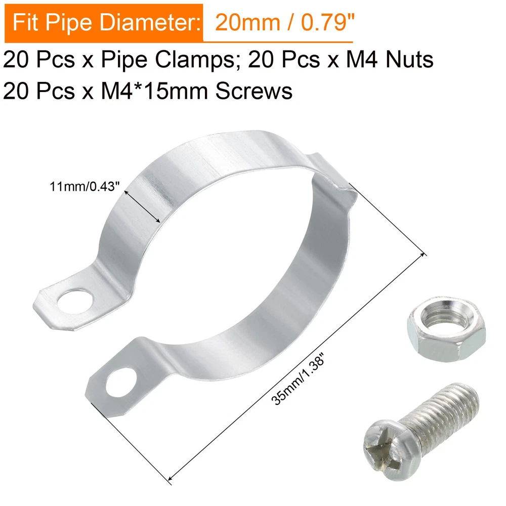 Document Description:Made of premium zinc-plated steel material for durability and stability, rust and corrosion resistant, ensuring long-term use, suitable for indoor and outdoor.With thicker metal and stable structure, durable to use and not easy to deform, can better tighten various pipes and be used on the ceiling or wall, and it is not easy to fall off after installation.Easy to install and convenient to use, package comes with mounting screws and nuts. Please according to the outer diameter of the pipe choose the correct size pipe clamp.Suitable for gas pipes, drain pipes, off-wall laying pipes, rod fixation and other tubes, hose, water supply pipes and wire applications, fit for wind industry, home construction, electric power field and more.Specification:Material: Zinc Plated SteelTotal Size: 35mmx11mm/1.38"x0.43"(L*W)Fit Pipe Diameter: 20mm / 0.79"Thickness: 0.5mmPackage Content:20Pcs x Pipe Clamps; 20Pcs x M4 Nuts; 20Pcs x M4*15mm Screws 20Pcs Pipe Clamps Rigid Bracket Pipe Strap Clamp Pipe Support Fit 3/4" Pipe Description: Made of premium zinc-plated steel material for durability and stability, rust and corrosion resistant, ensuring long-term use, suitable for indoor and outdoor. With thicker metal and stable structure, durable to use and not easy to deform, can better tighten various pipes and be used on the ceiling or wall, and it is not easy to fall off after installation. Easy to install and convenient to use, package comes with mounting screws and nuts. Please according to the outer diameter of the pipe choose the correct size pipe clamp. Suitable for gas pipes, drain pipes, off-wall laying pipes, rod fixation and other tubes, hose, water supply pipes and wire applications, fit for wind industry, home construction, electric power field and more. Specification: Material: Zinc Plated Steel Total Size: 35mmx11mm/1.38"x0.43"(L*W) Fit Pipe Diameter: 20mm / 0.79" Thickness: 0.5mm Package Content: 20Pcs x Pipe Clamps; 20Pcs x M4 Nuts; 20Pcs x M4*15mm Screws Hot Item Payment 1.We accept eBay payment . 2.Payment must be received within 7 business days of auction closing. Shipping 1.We ship to your eBay or Paypal address. Please make sure your eBay and Paypal address is correct before you pay. 2.Items will be shipped within 1-3 business day when we received payment. 3.Delivery time depends on destination and other factors. Description Policy 20Pcs Pipe Clamps Rigid Bracket Pipe Strap Clamp Pipe Support Fit 3/4" Pipe Description: Made of premium zinc-plated steel material for durability and stability, rust and corrosion resistant, ensuring long-term use, suitable for indoor and outdoor. With thicker metal and stable structure, durable to use and not easy to deform, can better tighten various pipes and be used on the ceiling or wall, and it is not easy to fall off after installation. Easy to install and convenient to use, package comes with mounting screws and nuts. Please according to the outer diameter of the pipe choose the correct size pipe clamp. Suitable for gas pipes, drain pipes, off-wall laying pipes, rod fixation and other tubes, hose, water supply pipes and wire applications, fit for wind industry, home construction, electric power field and more. Specification: Material: Zinc Plated Steel Total Size: 35mmx11mm/1.38"x0.43"(L*W) Fit Pipe Diameter: 20mm / 0.79" Thickness: 0.5mm Package Content: 20Pcs x Pipe Clamps; 20Pcs x M4 Nuts; 20Pcs x M4*15mm Screws Hot Item Payment 1.We accept eBay payment . 2.Payment must be received within 7 business days of auction closing. Shipping 1.We ship to your eBay or Paypal address. Please make sure your eBay and Paypal address is correct before you pay. 2.Items will be shipped within 1-3 business day when we received payment. 3.Delivery time depends on destination and other factors.