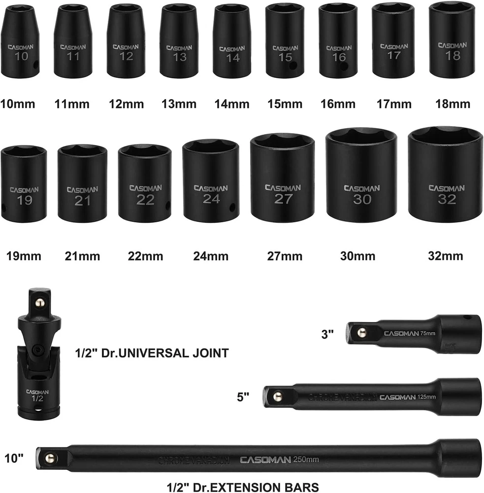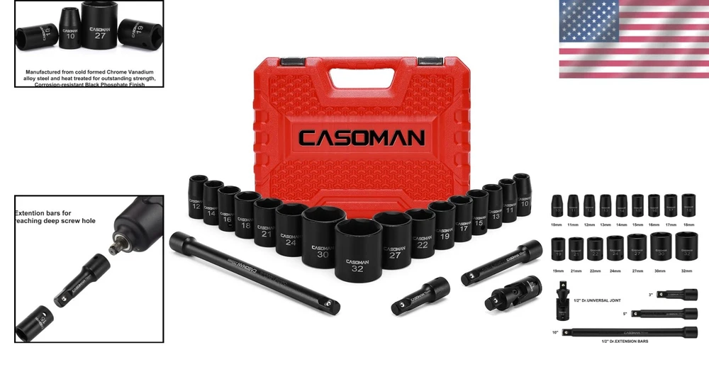 20-Piece 1/2-Inch Drive Metric Impact Socket Set 10mm-32mm - Durable CR-V ‹ › ‹ › ‹ › ‹ › ‹ › ‹ › ‹ › ‹ › ‹ › 20-Piece 1/2-Inch Drive Metric Impact Socket Set - Covers sizes from 10mm to 32mm Product Features: Durable Construction: Crafted from drop forged and heat treated chrome vanadium steel (50BV30) for exceptional durability in arduous conditions. Corrosion-Resistant Finish: Enhanced with a black phosphate finish, ensuring added protection against rust and wear. Innovative Design: 6-point flank drive design grips fasteners tightly on flat sides, preventing rounding off at corners for a reliable grip. High-Contrast Markings: Permanently laser etched sizes for quick identification, even in low light situations. Portable Storage: Comes in a heavy-duty plastic blow-molded carrying case, ensuring easy transport, organized storage, and instant accessibility. Quality Assurance: Meets or exceeds ANSI performance standards and includes a 1-year quality warranty for peace of mind. Benefits: Designed for both professional and DIY enthusiasts who demand exceptional quality. Broad range of metric sizes ensures you are prepared for any job at hand. Robust construction allows for extensive use while maintaining performance. Comfortably work in dim lighting with easy-to-read size markings. Reliable transportation and storage for seamless job transitions. Why Choose Our Impact Socket Set? This 20-Piece 1/2-Inch Drive Metric Impact Socket Set combines durability, design, and convenience that every technician or enthusiast craves. With its robust chrome vanadium steel construction and innovative grip technology, you can work efficiently on any project without fear of damaging your tools or fasteners. Easily transportable and neatly stored, this set is truly a must-have for anyone serious about their craft. Experience the fundamental difference in quality - invest in our Impact Socket Set today and elevate your toolbox! Shipping Free & Fast Shipping - We offer free shipping to most of the USA with a normal delivery time of 3-10 businessdays. However, due to various situations, additional delivery time (up to 3 weeks) may be required for some items. Alternative Carriers - We may use alternative carriers (e.g. USPS, FedEx, UPS, etc.) to ensure your package arrives safely and on time. Due to the use of multiple carriers, we are unable to provide a tracking number automatically. Handling Time - Orders are processed and shipped within 1-5 business days of receiving cleared payment. Shipping Restrictions - Shipping to Alaska, Hawaii, Puerto Rico, Guam, and other US territories may incur shipping charges or delivery restrictions. Please contact us before ordering, or your order can be refunded/cancelled. State Restrictions - There may be restrictions based on your state of purchase. For example, certain items may not be shipped to California due to state regulations. Contact for Tracking Updates - If you require tracking updates or have any concerns about the delivery of your order, please feel free to contact us, and we will be happy to assist you. Return Please see our ebay return policy. We do not accept return on most products. This is to avoid customers mis-using ebay returns. All sales are final. Please be sure to check the return policy listed at the top of the listing. In rare cases, we may accept returns, if the buyer pays both ways shipping and 20% restocking fee. If you are un-sure of return policy of a particular item, please ask before buying. Payment We accept all major credit cards, PayPal, and Apple Pay for your convenience. Your payment information is secure and encrypted to ensure a safe and seamless transaction. Please complete your payment within 3 days of purchase to avoid any delays in shipping. Feedback Your feedback is extremely important to us. We strive to provide the best products and customer service possible. If you are satisfied with your purchase, please take a moment to leave us a positive review. If you have any concerns or issues with your order, please contact us before leaving negative feedback. We are committed to resolving any problems and ensuring your satisfaction. Contact Us If you have any questions or concerns, please feel free to reach out to our customer support team. You can contact us through the eBay messaging system. We are available Monday to Friday, 9:00 am to 5:00 pm EST, and we will do our best to respond to your inquiry within 24 hours. Buy it now and enjoy a pleasant shopping experience! Manufacturer Part Number: Impact Socket Set UPC: Not Set Unit Quantity: 6.71 Tools Included: Extension,Universal Joints System of Measurement: Metric Size: 10mm,11mm,12mm,13mm,14mm,15mm,16mm,17mm,18mm,19mm,20mm,21mm,22mm,23mm,24mm,25mm,26mm,27mm,28mm,29mm,30mm,32mm,10mm-32mm,31mm Brand: Unbranded Socket Type: Impact Drive Type: 6 Point Drive Size: 1/2in. Surface Finish: Black Phosphate Warranty: 1 Year Number of Pieces: 20 Country/Region of Manufacture: Not Set Unit Type: lb Set or Single Item: Not Set