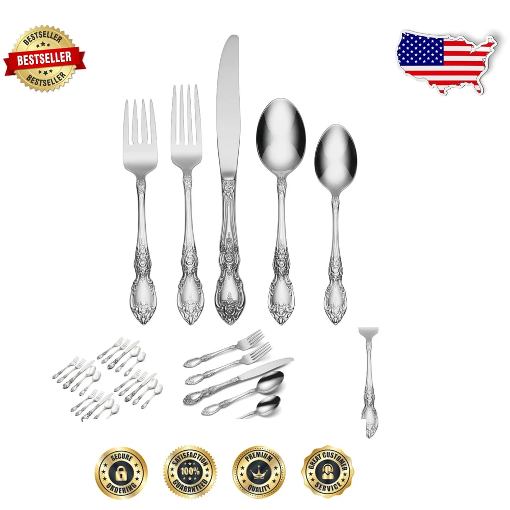 20-Piece Luxury Dining Silverware Set in Stainless Steel - Perfect for Any Table ‹ › ‹ › ‹ › ‹ › ‹ › ‹ › ‹ › ‹ › 20-Piece Luxury Dining Silverware Set Elevate your dining experience with this exquisite set crafted from premium quality stainless steel. Perfectly designed for both elegant soirees and everyday meals, this silverware set is a true embodiment of luxury. Included in Your Set: (4) Dinner Knives (4) Dinner Forks (4) Salad Forks (4) Dinner Spoons (4) Teaspoons Exquisite Design: Say goodbye to minimalism and embrace the beauty of elegant dining. The beautifully ornate Wordsworth line features a floral-inspired design that captures the essence of romance, offering a stunning high-end finish that sparkles on any table setting. Top-Quality Craftsmanship: Mirror finish for an unmistakable shine Heavyweight construction provides a distinguished feel Superior design that showcases luxury at its finest Durable Stainless Steel: Made from 18/0 stainless steel, this silverware set is resistant to rust and ensures easy maintenance. Rest assured, each piece will maintain its luster even after multiple uses and dishwasher cycles. Limited Lifetime Warranty: Invest in timeless elegance. This stainless-steel silverware set is built to impress for years to come, offering you a lifetime of unforgettable dining moments. Why Choose Our Luxury Dining Silverware Set? In a world of ordinary dining essentials, make every meal a special occasion with this stunning silverware set. Designed to deliver elegance and functionality without compromise, it is the perfect choice for restaurants and households alike. Enhance your table with sophistication and charm – order your 20-Piece Luxury Dining Silverware Set today and experience the art of dining, perfected. Shipping Free & Fast Shipping - We offer free shipping to most of the USA with a normal delivery time of 3-7 days. However, due to the current situation, additional delivery time (up to 3 weeks) may be required for some items. Alternative Carriers - We may use alternative carriers (e.g. USPS, FedEx, UPS, etc.) to ensure your package arrives safely and on time. Due to the use of multiple carriers, we are unable to provide a tracking number automatically. Handling Time - Orders are processed and shipped within 1-2 business days of receiving cleared payment. Shipping Restrictions - Shipping to Alaska, Hawaii, Puerto Rico, Guam, and other US territories may incur shipping charges or delivery restrictions. Please contact us before ordering, or your order can be refunded/cancelled. State Restrictions - There may be restrictions based on your state of purchase. For example, certain items may not be shipped to California due to state regulations. Contact for Tracking Updates - If you require tracking updates or have any concerns about the delivery of your order, please feel free to contact us, and we will be happy to assist you. Return 30-Day Hassle-Free Returns - We want you to be completely satisfied with your purchase. If you are not, you can return the item within 30 days of receiving it for a full refund or exchange. Easy Return Process - To start a return, simply contact us and we will provide you with a prepaid return shipping label and detailed instructions. Restocking Fee - There are no restocking fees for returns. However, the buyer is responsible for return shipping costs if the return is not due to a seller's error. Refund Processing Time - Refunds will be processed within 5 business days of receiving the returned item in its original condition. Payment We accept all major credit cards, PayPal, and Apple Pay for your convenience. Your payment information is secure and encrypted to ensure a safe and seamless transaction. Please complete your payment within 3 days of purchase to avoid any delays in shipping. Feedback Your feedback is extremely important to us. We strive to provide the best products and customer service possible. If you are satisfied with your purchase, please take a moment to leave us a positive review. If you have any concerns or issues with your order, please contact us before leaving negative feedback. We are committed to resolving any problems and ensuring your satisfaction. Contact Us If you have any questions or concerns, please feel free to reach out to our customer support team. You can contact us through the eBay messaging system. We are available Monday to Friday, 9:00 am to 5:00 pm EST, and we will do our best to respond to your inquiry within 24 hours. Buy it now and enjoy a pleasant shopping experience! UPC: Not Set Unit Quantity: 20 Material: Stainless Steel Set Includes: Serving Set,Dinner Knife,Dinner Fork,Salad Fork,Dinner Spoon,Teaspoon Department: Adults Character: Not Set Features: Dishwasher Safe,Rust Resistant,Stain Resistant Type: Set Brand: Unbranded Handle Material: Stainless Steel Country/Region of Manufacture: Not Set Color: Silver Finish: Mirror Style: Classic Handle Pattern: Not Set MPN: Not Set Occasion: Everyday Item Length: Not Set Wood Tone: Not Set Character Family: Not Set Care Instructions: Dishwasher Safe Item Weight: 2.59 lb Manufacturer Warranty: Not Set Model: Not Set Unit Type: lb