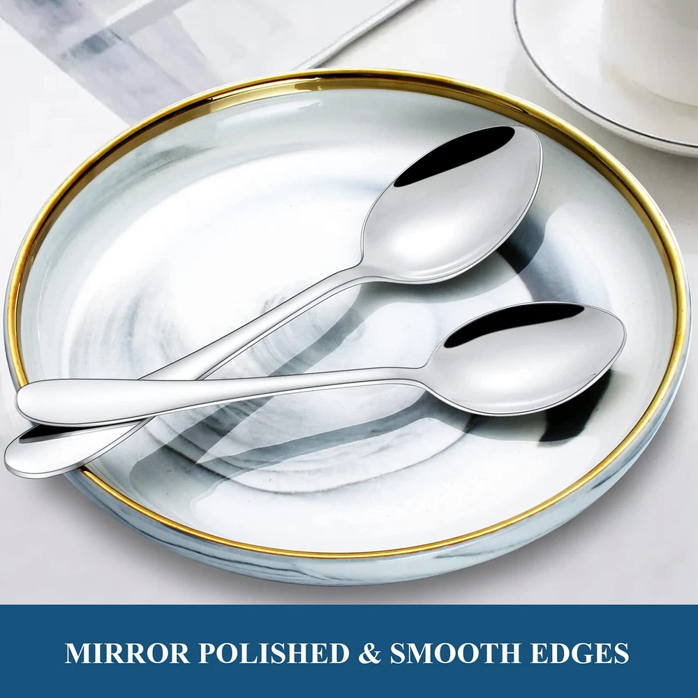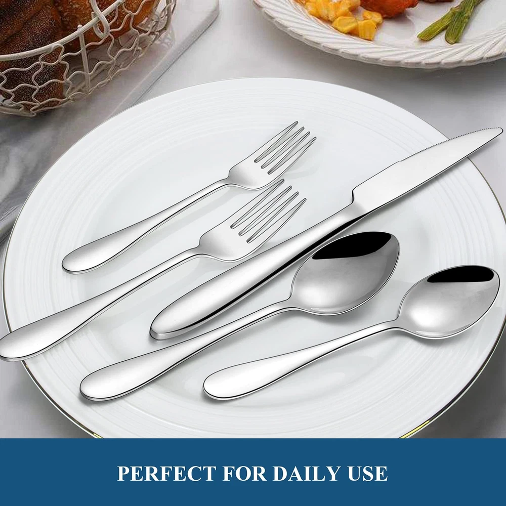 20-piece Stainless Steel Flatware Set is made of high quality 18/0 stainless steel, rust resistance and healthy for daily use. Simple and elegant design makes it suitable for any formal or informal occasions, such as home, hotels, restaurants, gathering, parties, picnics, camping, etc. Nice with a good length and proper weight, these tableware utensils provides a comfortable grip for both adults and big children. Why Choose Stainless Steel Silverware Set? πΈ [HEALTHY & DURABLE] Made of high quality 18/0 stainless steel, rust resistance, healthy, solid and durable for daily use. πΈ [ELEGANT DESIGN] Mirror polished surface, smooth edge no rough spots, proper gauge thickness and weight to hold comfortably. πΈ [MULTI FUNCTIONAL] Perfect for any formal or informal occasions, such as home, hotels, restaurants, gathering, parties, picnics, camping, etc. πΈ [EASY CLEAN] This flatware set is dishwasher safe, easy clean by hands. Your proper care can make this looks as good as new. PACKAGE CONTENTS π 9.2-inch Dinner Knife x 4 π 7.4-inch Dinner Fork x 4 π 7.4-inch Dinner Spoon x 4 π 6.5-inch Salad Fork x 4 π 6.5-inch Teaspoon x 4 USING INSTRUCTION 1. Please wash the flatware set with warm soapy water before first using to wash off any processing residue left from manufacturing. 2. Please clean and dry the silverware set after using for your daily use, and store in dry place for its durability. 3. Please do not use any harsh detergents, steel wool, scouring pads to clean the flatware set. [GUARANTEE]: 100% satisfaction guarantee for risk-free shopping - If you have any queries about our products, just contact us any time you feel comfortable. QUALITY SILVERWARE: 20-piece Stainless Steel Flatware Set is made of high quality 18/0 stainless steel, rust resistance, healthy, sturdy and durable for years to come PRODUCT INCLUDES: This flatware set services for 4 people which includes 4 dinner knives, 4 dinner forks, 4 dinner spoons, 4 salad forks and 4 tea spoons MODERN DESIGN: Mirror polished surface, smooth edge no rough spots, proper gauge thickness and weight to hold comfortably and provide you a fine dining experience FUNCTIONAL: Perfect for any formal or informal occasions, such as home, hotels, restaurants, gathering, parties, wedding, picnics, camping, etc. Easy clean and dishwasher safe USE AND MAINTENANCE: Itβs recommended to wash by hand, wipe dry before storing. Wire brush, hard sponge, cleaning cloth or any other hard material are not recommended, it will damage the silverware