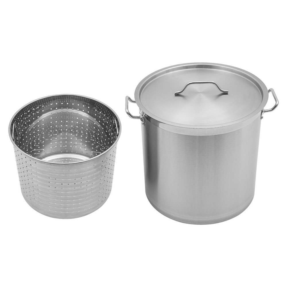 20QT Cooking Pot Set 14.8*13.8in Stainless Steel Soup Pot Draining Bucket w/ Lid Description If you are an experienced chef or passionate about cooking, then you undoubtedly know the importance of a quality pot in the kitchen. Our exceptional stainless steel pot is crafted from durable and healthy 201 stainless steel and 304 stainless steel materials with a sanding process that can handle a wide range of cooking needs such as steaming, stewing, and boiling. So why wait? Make the smart choice and invest in this outstanding cookware today! Key Features Build to Last: It is made of high-quality 201 stainless steel and 304 stainless steel materials with a sanding process, making it durable, healthy, and rustproof to meet your long-term cooking needs. Large Capacity : With a capacity of 52.83QT, it can store large quantities of water or food for you at one time, making it a great addition to your home kitchen. Cooking Assistant: The 40mm thickness and flat bottom of the pot have good heat absorption properties and can be used for soups, marinades, storing grains, etc. to meet your and your family's cooking needs and taste buds! Complete Set: This product also includes a draining bucket and a lid to meet your cooking needs at a great value for money, cooking enough food at one time for you and your family to enjoy. Compact and Lightweight: With the compact size(14.8*13.8in), stackable design, and lightweight(16.31lbs), you can easily pick them up or store them in a cabinet without taking up much space. Details Practical Draining Bucket: It is easy to use as a crayfish funnel bucket, pressed juice filter bucket, sterilizing bucket, deep frying bucket and so on. Lid With Handle: The lid can keep food warm and stored better. Its handle allows you to hold the lid conveniently. Large Bore : With an opening diameter(stainless steel pot diameter: 13.8in), it is easy for you to access the product and clean the inside. Sturdy Handles: The riveted handles on both sides of the pots are reinforced with steel plates and resistant to heat, which ensures a secure and comfortable grip for cooking on the stovetop or moving the pots around. Application It can be used in kitchens in hotels, restaurants, homes, etc., and is suitable for use with induction stoves, gas stoves, halogen stoves, glass stoves, and ceramic stoves. Specification Color: Silver Shape: Round Process: Sanding Material: 201 Stainless Steel, 304 Stainless Steel Mounting Type: Tabletop Is Dishwasher Safe: Yes Assembly Required: No Pot Bottom Thickness: 40mm/0.16in Capacity: 50L/52.83QT Number of Pieces: 2 Gross Weight: 8.5kg/18.74lbs Net Weight: 7.4kg/16.31lbs Draining Bucket Diameter: 29.9cm/11.8in Stainless Steel Pot Diameter: 35.05cm/13.8in Handle-to-bottom Distance: 29.9cm/11.8in Overall Product Size(L*H): 37.59*35.05cm/14.8*13.8in Package Size: 45*45*45cm/17.72*17.72*17.72in Package Included 1*Stainless Steel Pot 1*Draining Bucket Notes Please wash the cookware with slightly heated white vinegar(not included), then rinse with warm water and dry the cookware for initial use. We recommend that you clean the product with a neutral detergent and sponge (not included). Please do not heat an empty pot for a long time to avoid deforming the pot. Please avoid placing strong acids and alkalis food in the pot for a long time. For little stains, please wipe clean in warm water or use a small amount of vinegar or lemon to wipe. For bigger stains, please boil in water and white vinegar for 3-5 minutes, then clean the pot with a rag while it is still hot. Warm water and stain-removing powder can easily remove the yellowed areas. Please avoid direct rinsing of hot pots with cold water and rapid temperature changes. Please note that the riveted handles on both sides are heat-resistant, but not anti-scald. It is recommended to wear gloves(not included) to move to avoid burns. Please allow the slight color difference caused by the shooting light and 1-3cm error due to manual measurement, and make sure you do not mind before you order. Payment Delivery details Terms of sales About us Contact us Payment We accept ebay payment 。 Fees such as import duties, taxes are not included in the item price or shipping costs. These charges are the buyer's responsibility. Delivery details Shipping: 2-9 working days to: USA Terms of sales We maintain high standards of excellence and strive for hundred percent customer satisfaction. Feedback is very important to us. We hope that you contact us immediately before you give neutral or negative feedback, so that we can address your concerns. It is impossible to address issues if we do not know about them! About us Your satis faction is our ultimate goal. We work hard to earn your trust and future business. Our certified technicians have tested each item before shipping. The unit comes with 1 year limited warranty on all manufacturing defects. a) If you receive a defective item, you may return it or ask for a discount. Please contact us within 14 days after you receive the package. b) What you returned must be intact and in its original packaging as re? u. Customer is responsible for shipping costs of the returned item. c) We will cover the cost of shipping back t with the shipping rate indicated in the registration page. We will send you a new unit or refund the full payment you paid. Thank you. Contact us Business Hour Business Hour: Monday To Friday: 8:30 AM to 5:00 PM (Beijing China time) Due to time zones, our reply to your questions may not be immediately. But within above working time, we will reply your email within 24 hours. If it's non-workdays, please kindly be patient and wait till Monday. Please contact us with ebay message. Please feel free to contact us if you have any questions. Monday To Friday: 8:30 AM to 5:00 PM (Beijing China time) Due to time zones, our reply to your questions may not be immediately. But within above working time, we will reply your email within 24 hours. If it's non-workdays, please kindl