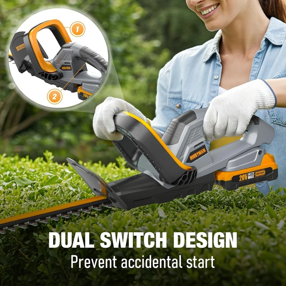 24V Cordless Hedge Trimmer and Grass Shear 2-in-1 Electric Shrub Cutter