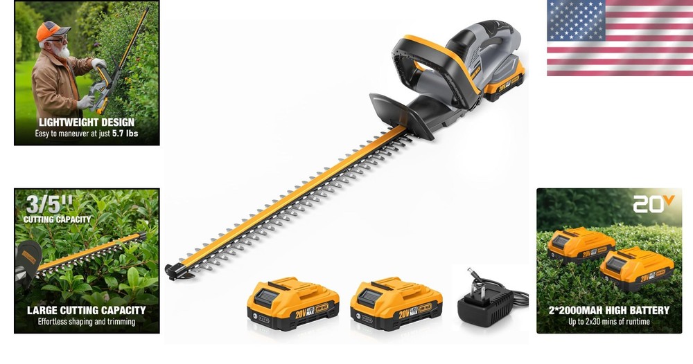 20V Brushless Cordless Hedge Trimmer with 22" Blade & 2 Batteries - Lightweight ‹ › ‹ › ‹ › ‹ › ‹ › ‹ › ‹ › ‹ › ‹ › 20V Brushless Cordless Hedge Trimmer 22" Blade & 2 Batteries Lightweight Design Features: UPGRADE BRUSHLESS MOTOR: Enjoy state-of-the-art brushless motor technology that operates 80% longer, delivers 50% more power, lasts 10 times longer, and operates 50% quieter than traditional motors. Experience the perfect blend of power and serenity. EFFICIENT CUTTING CAPABILITY: Equipped with a 22-inch dual-action blade, it boasts a maximum speed of 1400 SPM and a 3/5-inch cutting capacity to tackle a variety of shrubs and hedges seamlessly, minimizing vibration and enhancing efficiency. COMPACT AND LIGHTWEIGHT: At just 5.7lbs, this hedge trimmer is designed for portability. Its rubber soft grip handles ensure comfort and control from any angle, making it ideal for prolonged use, especially for the elderly and women. ERGONOMIC DESIGN: The D-shaped handle allows for easy positioning at any angle, ensuring a comfortable grip during extended trimming sessions. SAFETY FIRST: With a dual switch design, the trimmer activates only when both the trigger and the D-handle are pressed simultaneously, effectively preventing accidental start-ups and keeping your loved ones safe. GUARANTEE SERVICE: Backed by a 365-day warranty, should any issues arise during the after-sales period, contact us for free parts or a replacement without hassle. Why choose this Hedge Trimmer? Transform your gardening experience with our 20V Brushless Cordless Hedge Trimmer. Engineered for efficiency, comfort, and safety, it's your ultimate landscaping companion. Feel the power of advanced technology while enjoying a quieter garden trimming experience. Its lightweight design means you can achieve flawlessly manicured hedges without feeling fatigued. Perfect for gardeners of all ages, it's not just a tool; it’s a promise of impeccable outdoor aesthetics. Elevate your gardening game — choose our Brushless Cordless Hedge Trimmer today! Shipping Free & Fast Shipping - We offer free shipping to most of the USA with a normal delivery time of 3-10 businessdays. However, due to various situations, additional delivery time (up to 3 weeks) may be required for some items. Alternative Carriers - We may use alternative carriers (e.g. USPS, FedEx, UPS, etc.) to ensure your package arrives safely and on time. Due to the use of multiple carriers, we are unable to provide a tracking number automatically. Handling Time - Orders are processed and shipped within 1-5 business days of receiving cleared payment. Shipping Restrictions - Shipping to Alaska, Hawaii, Puerto Rico, Guam, and other US territories may incur shipping charges or delivery restrictions. Please contact us before ordering, or your order can be refunded/cancelled. State Restrictions - There may be restrictions based on your state of purchase. For example, certain items may not be shipped to California due to state regulations. Contact for Tracking Updates - If you require tracking updates or have any concerns about the delivery of your order, please feel free to contact us, and we will be happy to assist you. Return Please see our ebay return policy. We do not accept return on most products. This is to avoid customers mis-using ebay returns. All sales are final. Please be sure to check the return policy listed at the top of the listing. In rare cases, we may accept returns, if the buyer pays both ways shipping and 20% restocking fee. If you are un-sure of return policy of a particular item, please ask before buying. Payment We accept all major credit cards, PayPal, and Apple Pay for your convenience. Your payment information is secure and encrypted to ensure a safe and seamless transaction. Please complete your payment within 3 days of purchase to avoid any delays in shipping. Feedback Your feedback is extremely important to us. We strive to provide the best products and customer service possible. If you are satisfied with your purchase, please take a moment to leave us a positive review. If you have any concerns or issues with your order, please contact us before leaving negative feedback. We are committed to resolving any problems and ensuring your satisfaction. Contact Us If you have any questions or concerns, please feel free to reach out to our customer support team. You can contact us through the eBay messaging system. We are available Monday to Friday, 9:00 am to 5:00 pm EST, and we will do our best to respond to your inquiry within 24 hours. Buy it now and enjoy a pleasant shopping experience! UPC: Not Set Unit Quantity: 5.7 pounds Attachments Included: Hedge Trimmer Features: Lightweight,Brushless Motor,Efficient Cutting Capability,Compact and Lightweight,Ergonomic Design,Safety Features Accessories Included: Charger,2 * 2.0Ah Battery Material: Plastic Brand: Unbranded Type: Hedge Trimmer Power Source: Battery Product Line: Not Set Voltage: 20 V Engine Type: Not Set Model: Not Set Horsepower: 1 HP Noise Level: 50 dB Power: 200 W Battery Life: 60 min MPN: Not Set Engine Size: -- Tank Capacity: -- Color: Gray Blade Length: 22 in Year Manufactured: Not Set Item Width: Not Set Item Diameter: 22 in Cable Length: Not Set Item Length: Not Set Item Height: 1 Inches Country/Region of Manufacture: Not Set Item Weight: 5.7 pounds Cutting Length: Not Set Manufacturer Warranty: Not Set Style: Contemporary Unit Type: Not Set Battery Included: Not Set Assembly Required: Not Set
