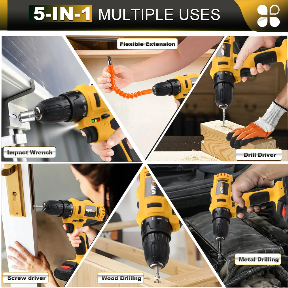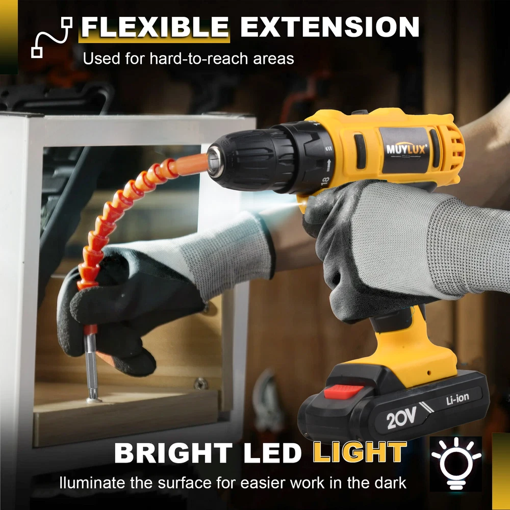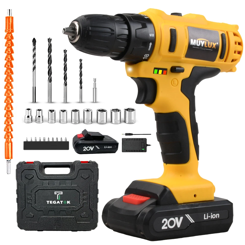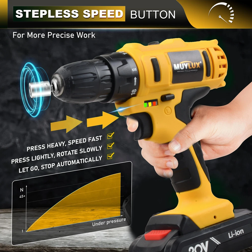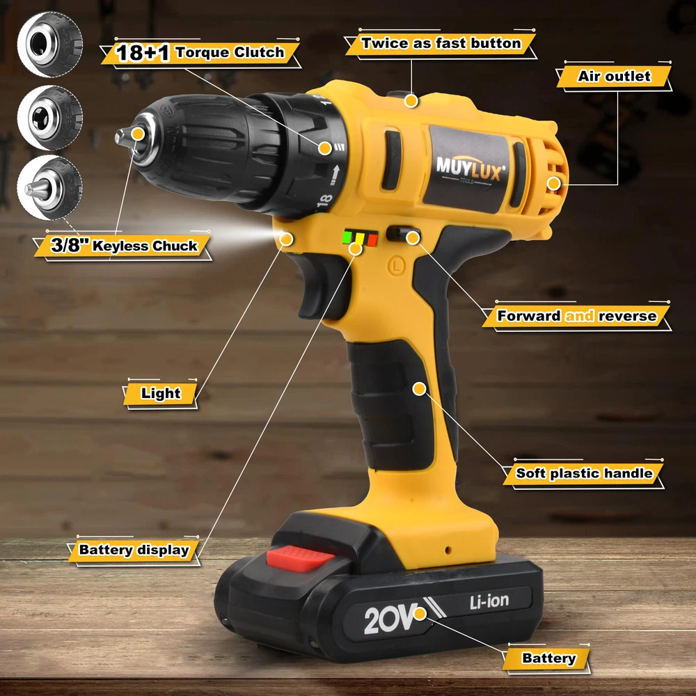 20V Cordless High Power Drill Set 3/8" Keyless Chuck And 18+3 Torque Setting