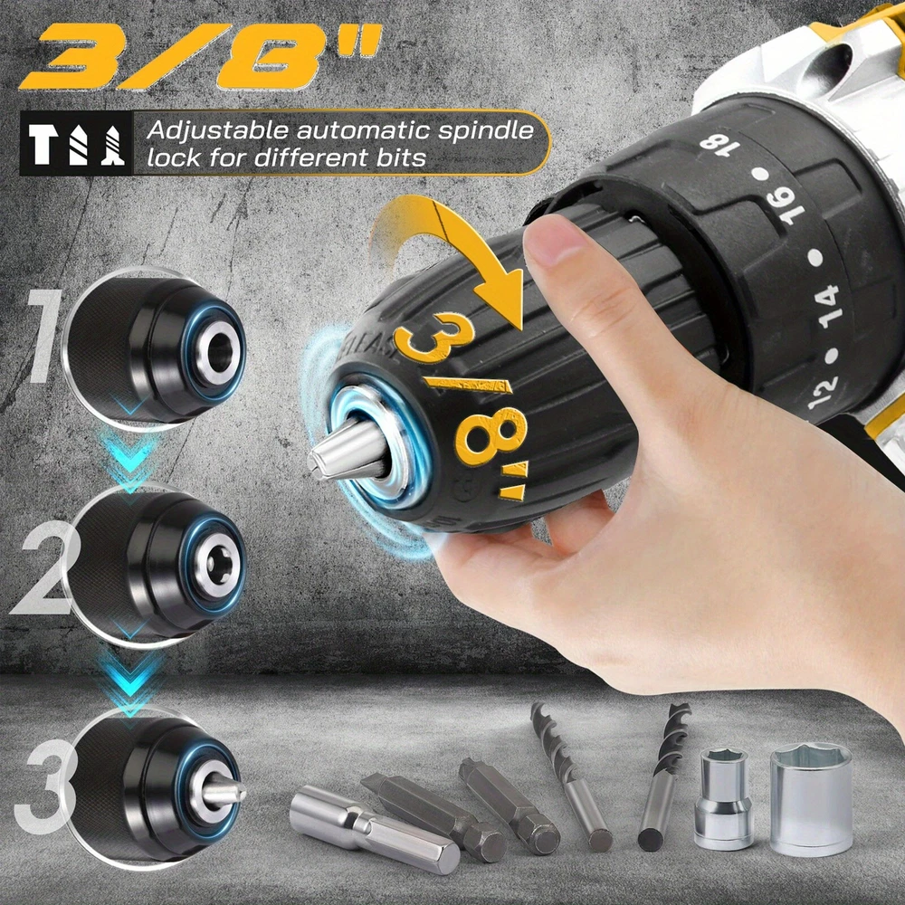 [12V Drill Set & Mini Saw], 3/8" Chuck, 24 N.M Torque, 4" Chainsaw, 2 Batteries