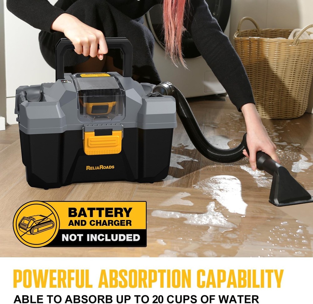 20V Cordless Vacuum Cleaner-Wet/Dry Shop Vac,2.6 Gallon Capacity,Compatible with DeWALT Batteries (Bare Tool - No Battery & No Charger),Ideal for Cleaning Car,Home Spaces,and Workshops RCSV-20 Compatibility:The 20V wet dry shop vac is designed for compatibility with the popular DeWALT 20V Max battery system.This makes it especially suitable for users who already possess DeWALT tools.There's no need for additional investment in new batteries and chargers,as it operates with DeWALT batteries up to 5Ah and can achieve up to 30 minutes of runtime. Powerful Wet Dry Vac Cleaning Capability:With a high airflow of 45cfm and strong suction power of 12.1 Kpa,this battery vacuum cleaner can easily handle even the most stubborn wet spills or dry debris.Its 2.65-gallon dust collector capacity means you can tackle more cleaning tasks without frequent emptying,making the cleaning process more efficient and time-saving. Versatile Accessory Kit:The included cleaning tools (soft hose and connectors,multi-purpose nozzle,crevice tool,sofa brush,and extra long crevice tool),along with an efficient mini filter cartridge,enable you to effectively tackle a variety of cleaning situations and needs.From dust in crevices to crumbs on the sofa,our accessory kit makes your cleaning tasks practically limitless. Deep Cleaning Flexibility:The vacuum's hose has a 1-1/4 inch diameter and is 6.56 feet long,offering flexibility during clean-ups and allowing you to easily reach tight corners.Vacuum cleaner also comes with a blowing feature, allowing for effective removal of dust from hidden spots in the machine after using the tool.,providing a dual-purpose solution to your cleaning challenges. Durable and Portable:Equipped with a washable filter for easy maintenance,its lightweight design and convenient carry handle allow for effortless transportation between different sites, whether it's an outdoor work location or home cleaning tasks.The ability to detach the body easily opens the unit for quick disposal of debris, enhancing convenience Shipping We offer FREE shipping on all orders! We ship within Three business days of payment, usually sooner. Local pickups and combined shipping options are not provided at this time. Return You can return a product for up to 30 days from the date you purchased it. Any product you return must be in the same condition you received it and in the original packaging. Please keep the receipt. Payment We accept payment by any of the following methods: PayPal Please pay as soon as possible after winning an auction, as that will allow us to post your item to you sooner! Feedback Customer satisfaction is very important to us. If you have any problem with your order, please contact us and we will do our best to make you satisfied. Contact Us If you have any queries, please contact us via ebay. We usually respond within 24 hours on weekdays. Please visit our eBay store to check out other items for sale! Thank you for shopping at our store.