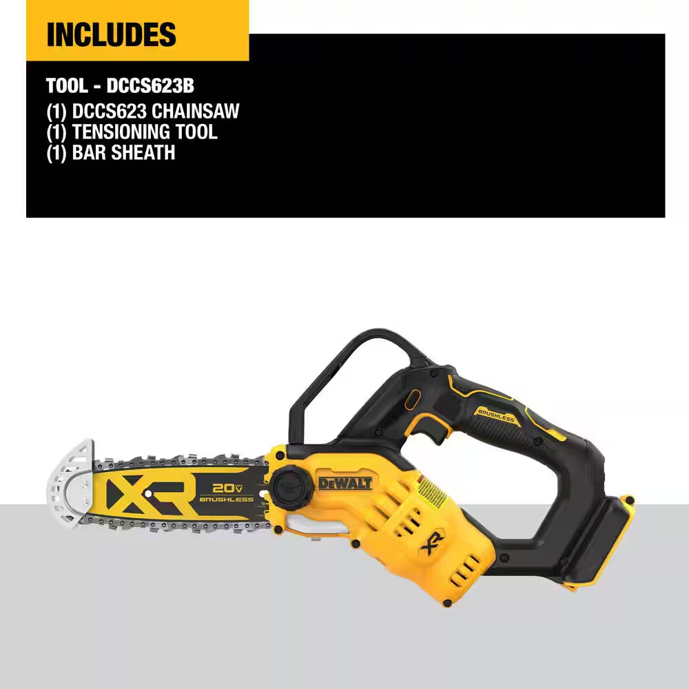 Fast Shipping On All Items 30 Days Money Guarantee Customer Support Excellent Service 100% Satisfaction Satisfaction Guaranteed 20V MAX 8 In. Brushless Cordless Battery Powered Pruning Chainsaw (Tool Only) Specification Battery Amp Hours No Battery Battery Power Type Lithium Ion Battery Size Lithium Ion Battery Voltage (V) 20V Battery/Charger Tool Only Chain Pitch 3/8 in. Chain Speed (mps) 8.6 Chainsaw Bar Size Mini Chainsaw Type Hand Chainsaw Charger Included Charger Not Included Color Family Yellow Condition New Drive Links 34 Features Automatic Chain Oiler,Brushless Motor,Replaceable Cutting Blade Filter Type No Filter Gauge .043 Handle Type Rear Handle Chainsaw Included Scabbard,Scrench/Combination Wrench Number of Total Batteries Included 0 Outdoor Power Combo No Additional Tools Power Type Battery Product Weight (lb) 7.4 lb Refurbished No Returnable 90-Day Tools Included Chainsaw Torque Maximum (Nm) 2.0 Certifications and Listings UL Listed Manufacturer Warranty 3-Year Limited Warranty 1-Year Free Service 90-Days Satisfaction Guaranteed Bar Length (in) 8 in. Chain Size 8 in. Maximum Cut Diameter (in) 6 in 8.0 inches. Weight: 7.4 lb Item Description Tool only, battery and charger sold separately 20V brushless cordless chainsaw motor maximizes runtime & life Lightweight battery chainsaw for easy control Lightweight and compact, the 20V MAX 8 in. Cordless Pruning Chainsaw has a high-efficiency brushless motor designed to maximize runtime and motor life. Weighing just 4.6 lbs (tool only), the Pruning Chainsaw is 61% lighter and 3x more compact, designed to reduce fatigue while cutting, trimming and pruning. Use it to trim branches from downed trees, cut bundles of wood or branches, and manage thick brush or daily pruning needs. Compact design allows for easy access to tight spaces. Integrated tip guard is designed to provide stability during upcuts, and onboard wrench for fast, easy tensioning. Lightweight and designed for reduced fatigue Compact design for easy access to tight spaces High-efficiency brushless motor designed to maximize run time and motor life Auto-Oiling for continuous lubrication Tip guard designed to provide stability during upcuts Maximum initial battery voltage (measured without a workload) is 20 volts, nominal voltage is 18 When compared to the DCCS620 chainsaw (tool only) About us We offer the best prices around on high quality products. Our E-store includes media such as books, movies, music and games while offering electronics, toys, sporting apparel, clothing, tools, general home, garden items and more. Shipping We are always working hard to ensure your package arrives as soon as possible. Please understand that some factors like weather, high postal traffic, and the performance of shipping companies are outside of our control. We offer free shipping to the lower 48 states and ship within 2-3 business days of payment, usually sooner. We do not accept P.O. Boxes. Please provide a physical address. For shipping outside of the continental USA, we only use eBay's Global Shipping Program.The item is shipped to KY and then sent to the rest of the world. International customers are responsible for all duties and taxes. Continue to check out to calculate costs for shipping the item to your country. Messages regarding eBay's Global Shipping Program MUST be directed at eBay EXCLUSIVELY. Returns We offer a 30-Day Return Policy on items in which you are not completely satisfied with. You have the option of a full-refund or an exchange of the item. No returns are available on items shipped outside of the USA Satisfaction We try over very best to make sure every customer is completely satisfied. If there's a problem, message us! We're happy to help. Payment Options Shop With Confidence
