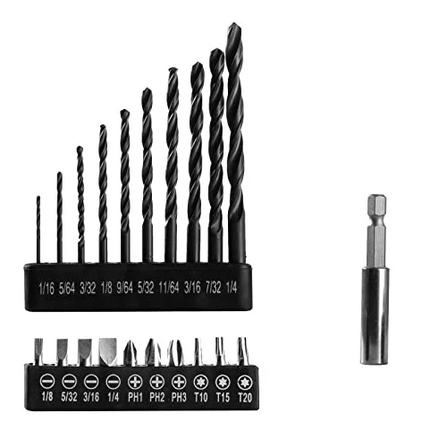 The 20-Volt 1.5Ah 3/8 Cordless Drill Set, Power Drill Set 21pcs, Tool bag, Battery and Charger Included is a complete power drill set that includes a cordless drill, 21pcs drill bit set, tool bag, and battery charger. This powerful cordless drill with a torque setting of 17+1 is perfect for a variety of drilling and driving applications. The 3/8" chuck size is ideal for a wide range of drill bits and drivers. The included 21pcs drill bit set provides a great selection of bits for drilling into wood, metal, plastic, and more. The tool bag is perfect for storing and transporting your drill, bits, and accessories. The battery charger is included for charging the included 20-volt 1.5Ah battery. Included: Power Drill, battery, charger, 10 drive bits, 10 drill bits, 1 magnetic bit, and tool bag Power Drill Set Includes: 10 driving bits, 10 drill bits, magnetic drill bit, tool bag, power drill, battery and charger Powerful 20-volt cordless drill set with 3/8-In Chuck. Drill features 2 variable speeds: 400rpm/1500rpm Compact and lightweight drill design with comfortable rubber handle allows for easy use for all users LED light illuminates when the drill is being used allowing users to see when using the drill in dark working areas 17+1 Torque setting provides power and control for driving/drilling without stripping or splitting the project at hand.