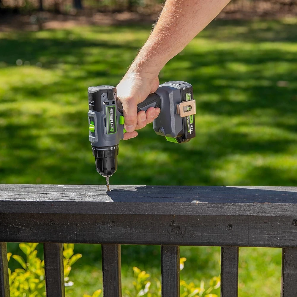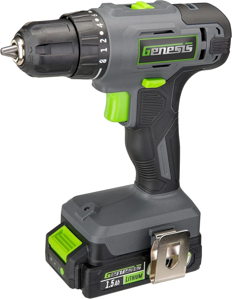 About this item This item will be shipped from the US warehouse and will be delivered within 2-5 days via USPS Produces 300 In-lb to take on the most demanding Projects Keyless Chuck makes bit changes a breeze 2-Speed Gear Box with 23+1Clutch settings delivers the desired toque, power, and speed to match the job. Includes: Battery, Charger, Driver Bit, Belt Clip, and 2 Year Warranty, LED light illuminates the workpiece LED Fuel Gauge on Battery Indicates Remaining Charge. Quick Charger Included for Faster Battery Recharging CALIFORNIA PROPOSITION 65 WARNING: Cancer and Reproductive Harm Genesis Power Tools introduces the G20MAX System of 20V Cordless tools! Drill pilot holes and drive door hinge and cabinet fixture fasteners with ease using the New Genesis 20V Cordless 3/8 in Drill. It delivers 300 In-lbs of Torque for your most demanding projects. Change bits quickly and easily with the keyless chuck. Illuminate your drilling surface with the onboard LED Light. The electric brake quickly stops the bit for more control. Use the belt clip to free your hands for other tasks. Includes a 20V 1.5Ah Lithium-Ion Battery, Quick Charger, Driver Bit, a 2 Year No-Hassle Warranty, and US Based Customer Support.