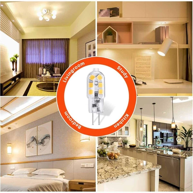 Features: and high ● for DC 12V LED bulbs, replacing 20W halogen LEDs, can save up to 93% of electricity ● standard base, plug and for play. Larger than traditional halogen bulbs. ● Application: suitable for landscape lighting, cabinet lights, picture lights, column lights, table lamps, ● for DC 12V: 12V for DC and 12V input voltages are compatible. Please do not use with dimmer ● long service life, environmental for no for mercury, no ultraviolet or radiation. Specifications: ABS Number of lamp beads: 12 Number of for DC lamp beads: 12 Base Type: Bi-pin Working for DC 12V Color temperature: 3000K Luminous Intensity: 150-180LM Size1: Approx.1.46X0.47inch Size2: Approx.0.5x1.7inch Package Includes: 10PcsxHalogen Bulbs note: 1.Please allow 1-2mm errors due to manual measurement, make sure that you do not mind before you order. 2.Due to the difference between different monitors, the picture may not reflect the actual color of the item.