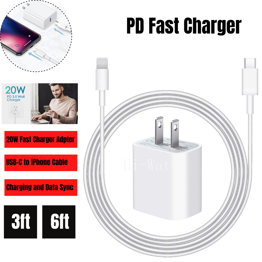 3X 20W USB C Fast Charger Adapter PD Cable For iPhone 14/13/12/11Pro Max XR iPad Specification: Type: PD Fast Charger, Wall Charger , Power Adapter, Car Charger, Charger Adapter, USB-C Cable, Charging & Data Sync Cable, Type-C, USB Cable, USB-C to iPhone Cable Features: Fast Charge, Lightweight Color: White Length: 1m/3ft,2m/6ft Ultra-Fast Charging : 20W USB-C For iPhone fast charger, For iPhone 12 up to 50% in just 30 minutes, which saves more than 1 hour for you, when compared to the 5W original charger. Fast Charging & Data Transfer : Top quality For iPhone cable is made of excellent copper cord, which charge For iPhone safely and fast. Work perfectly with wall charger or computer. It not only a safe For iPhone charge cable, but also a fast transferring For iPhone data cable. Tangle-free 6 Foot length is convenient for usage while charging and sync at home/office/travel in bed, hotel rooms, and more. Safety Protection: The Charger Internal High-Quality Chips Protect Your Devices from Heating, Short-circuiting, and over Charging. Our Technology Teams Make Tens of Thousands of Tests to Ensure Users and Devices Safety . Universal Compatibility: 20W USB-C power adapter & C to iPhone cable set, compatible with for iPhone 12/12 Mini/12 Pro/12 Pro Max/11/11 Pro/11 Pro Max/XS/XS Max/ XR/X/8 Plus/8, For iPad Pro/Air/ Mini and More. Travel Ready : Lightweight and pocket-size, USB-C wall charger with 3FT charger cable maximizes portability wherever you go. And a wide range of 100-240V input makes it ideal for world travel. Comprehensive Compatibility : With the Corey kin 20W wall charger to access the fast charging for iPhone 12/12 Mini/12 Pro/12 Pro Max/11/11 Pro/11 Pro Max/XS/XS Max/ XR/X/8 Plus/8/7/7 Plus/6; for iPad Pro 10.5”/for iPad Air 3 10.5”/for iPad Mini5 7.9” and More