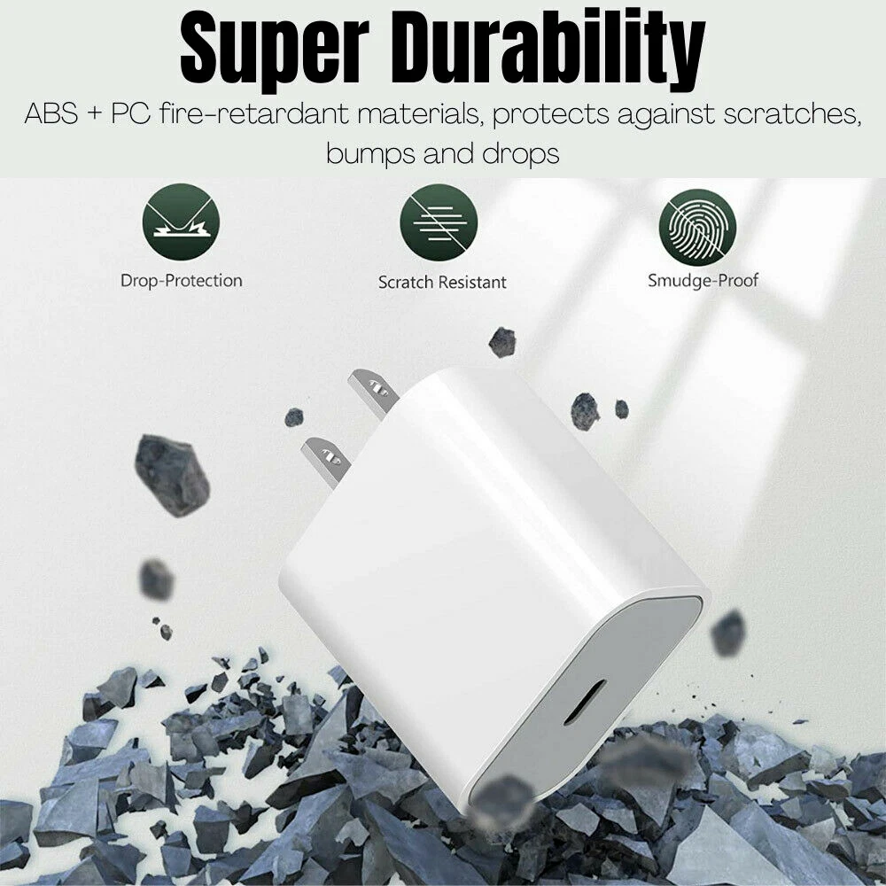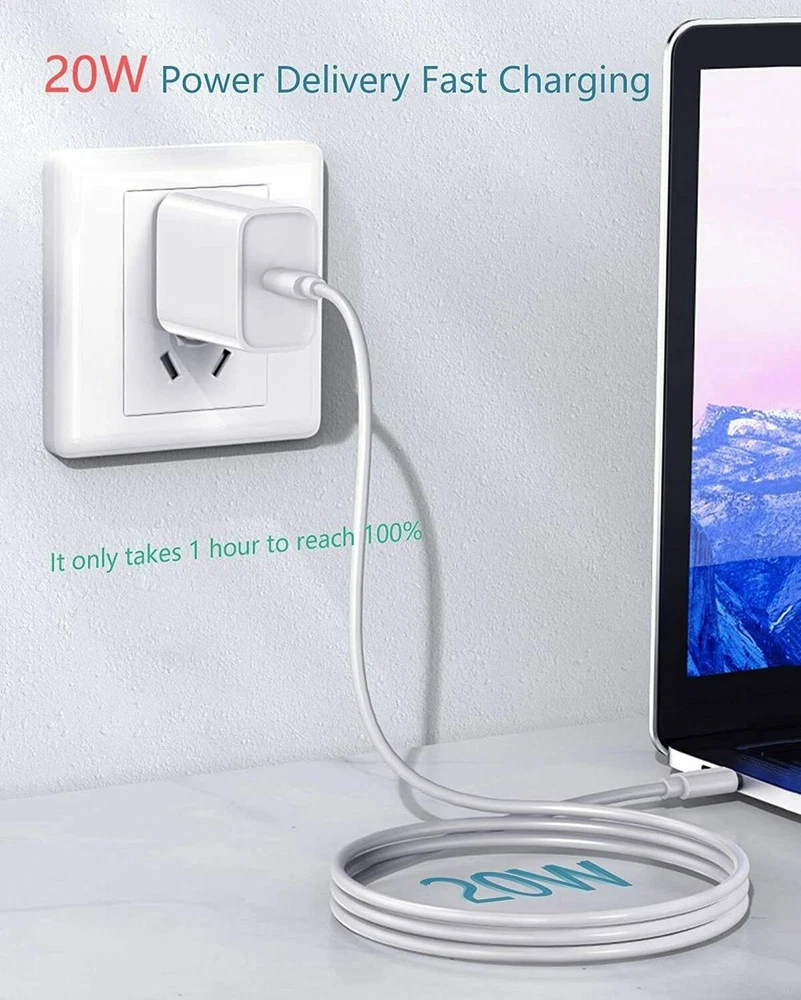 Fast Data Transfer & 3.0X Faster Charging: With this USB-C to iPhone Cable, you could transfer data from your iPhone/iPad directly, The speed of data transfer is up to 480 Mbps. Your iPhone 12 can be charged up to 50% after 30 mins fast by iPhone 12 charger. Compared with 5W original charger, this 20W PD fast charger for iPhone could save more than 1.5 hour for you! 20W Power Delivery Fast Charge Speed: For iPhone 14/14 Pro/14 Pro Max/14 Plus For iPhone 13/13 Pro/13 Pro Max/13 Mini For iPhone 12/12 Pro/12 Pro Max/12 MIni For iPhone SE 2020 For iPhone 11/11 Pro/11 Pro Max For iPhone X/XR/XS/XS Max For iPhone 8/8 Plus For iPad Pro 10.5”/iPad Pro 11". For iPad Mini 5 7.9”and later models. Standard Charge Speed: For iPhone 7 7 Plus, 6 6 Plus, 6S 6S Plus, 5, 5C, 5S, SE,For iPad Air, For iPad Mini,For iPad Pro. Composition Materials: 20W USB-C PD3.0 Fast Charging MFi Certified Chip Color: White Cable Length: 3FT/6FT Input Voltage: 100-240V ~ 50-60Hz, 0.6A Output Power: 5V/3A, 9V/2A, 9V/2.2A Material: TPE Flexible Cord Carbon + 100% Coppery Core Bulit in High-Tech Chip: The updated smart iQ chip in the USB-C power adapter protect your iPhone/iPad from overcurrent, over-voltage, short-circuit and overheating, improving the charging efficiency and security. Charge Your iPhone Everywhere: Compact size 20W PD wall charger paring with 3ft/6ft extra long C to cable with fast, efficient charging at home, in bedroom, office, backseat of car and even travel anywhere, completely hassle-free. Heavy-Duty Durable Cable: For iPhone fast charging cable is Extremely durable with built-in kevlar fiber for maximum strength. It could bring larger and stable current without damaging the device battery when charging. Package Included: 3ft/6ft USB C to iPhone White (Optional) 20W Type C PD Wall Plug - White (Optional)