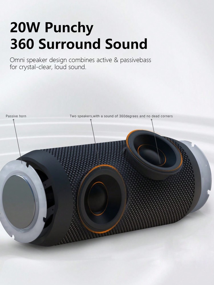 [Portable Waterproof]: Take your music everywhere with the EDUPLINK Bluetooth Speaker, designed for outdoor adventures, beach escapades, and poolside parties. With its compact size, resembling that of a slightly larger soda can, you can easily carry it in your bag. Its IPX7 waterproof rating ensures a worry-free experience even in the shower, making it the perfect musical companion for adventure seekers, beach enthusiasts, and teens on the go. [Long-Lasting Entertainment]: Enjoy non-stop music fun with the speaker's long-life battery, boasting a high-capacity 3600mAh battery that provides an impressive 20 hours of playtime at medium volume with the lights off. It's perfect for travelers, bikers, and outdoor enthusiasts seeking continuous entertainment during their adventures. [Powerful and Clear Sound]: Elevate your auditory journey with the speaker's 20W output and crystal-clear stereo sound, captivating audiophiles, music aficionados, and even children enjoying immersive playtime. [Immersive TWS Pairing]: Experience a true stereo sound experience with the speaker's TWS capability, pairing with another speaker for a powerful and vibrant audio perfect for patio gatherings, boat trips, and more. [Multifunctional Speakers]: Unleash a world of possibilities with the speaker's synchronized RGB lights for setting the perfect ambiance, TF card slot for direct music playback, and AUX input for connecting to various devices, catering to the diverse entertainment needs of tech-savvy users, party hosts, and outdoor enthusiasts.