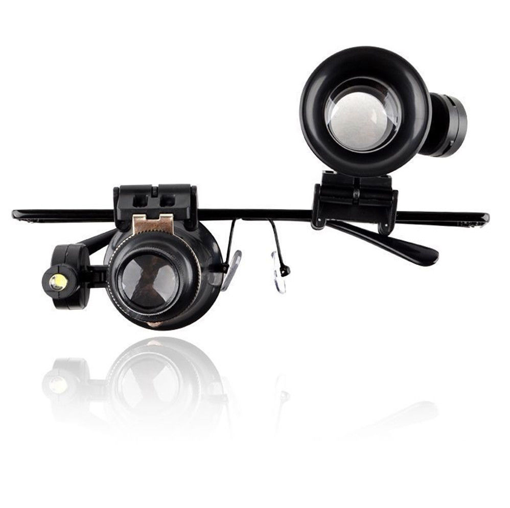 Product Description Features: This Magnifying Glass is the ideal tool for jeweler, watchmaker, coin and stamp connoisseur 100% brand new and high quality. Loupe can be adjusted on the eye glass frame Adjustable LED Light for better illumination. Wide view, great for watch repairing and inspecting jewelries, stamps, coins, notes, etc. Specifications: Lens diameter: 25mm Magnification: 20x Light Source: 2 LED light Battery: 2 x CR1620 Button cell battery (inluded) Weight: About 72g Color: Black What's included: 1 x Glasses type magnifier Shipping Returns Contact Us Payment 1. Items sent from US warehouse. 2.Receiving time = Processing time + Shipping time 3. Processing Time: Around 1-2 business Days 4. Shipping Time: 3-5 business day it may have a little delay during some holiday (such as Christmas),any problem ,please feel free to contact 1. 30 days warranty from the purchased date. Please contact us via email before returning the defective item. 2.Our warranty does not extended to any product that are physically damaged or that are not under normal operating conditions as result of misuse or improper installation on the buyer/user's part. 3.Return items should include the original packaging and all accessories. buyers MUST contact us for the returning address. 4.In all cases, buyers pay shipping fees at their own cost to return products for exchange or refund. We will be responsible for the postage of replacements. Refund will be made upon receipt of the returned item. Pls contact us if you have any problems,we will try our best to solve for you We accept all verified payment from eBay. Shipping 1. Items sent from US warehouse. 2.Receiving time = Processing time + Shipping time 3. Processing Time: Around 1-2 business Days 4. Shipping Time: 3-5 business day it may have a little delay during some holiday (such as Christmas),any problem ,please feel free to contact Returns 1. 30 days warranty from the purchased date. Please contact us via email before returning the defective item. 2.Our warranty does not extended to any product that are physically damaged or that are not under normal operating conditions as result of misuse or improper installation on the buyer/user's part. 3.Return items should include the original packaging and all accessories. buyers MUST contact us for the returning address. 4.In all cases, buyers pay shipping fees at their own cost to return products for exchange or refund. We will be responsible for the postage of replacements. Refund will be made upon receipt of the returned item. Contact Us Pls contact us if you have any problems,we will try our best to solve for you Payment We accept all verified payment from eBay. powered by