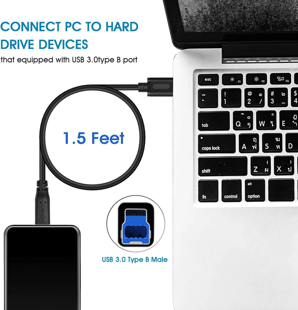 20ft USB 3.0 A Male to B Male SuperSpeed Cable for Fast Data Transfer