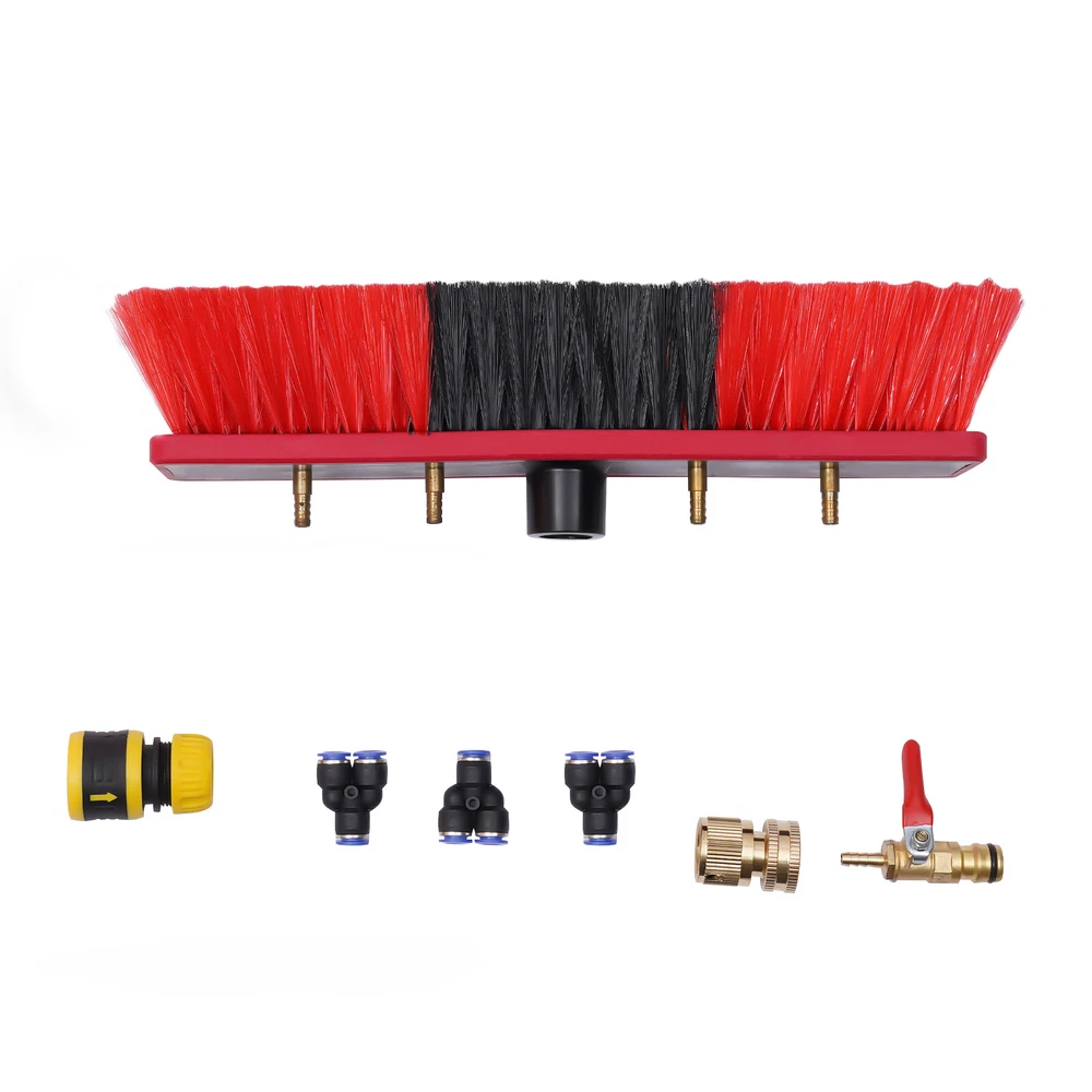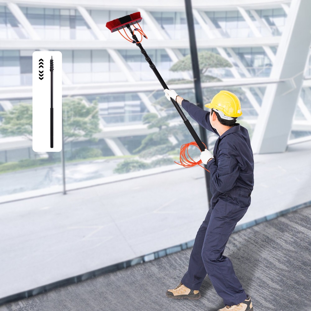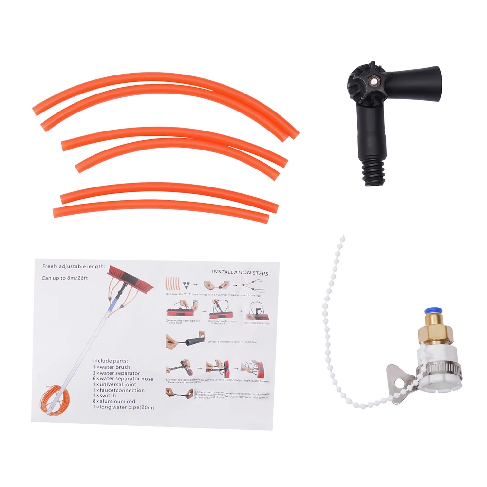Welcome to basedaak222~ Description This water fed brush is equipped with a telescopic pole and a 23ft long water hose, offering great convenience in cleaning space. The PP bristles provide good cleaning power without scratching the cleaning surface, making it ideal for cleaning photovoltaic panels, cars and windows. The hose can also be installed in the telescopic pole, making it more aesthetically pleasing and convenient. Key Features Safety Protection: This professional cleaning tool for high surfaces lets you say goodbye to rickety ladders or dangerous roof climbs! Quality Materials: The sturdy aluminum alloy pole can support up to 145lbs and will not bend even at maximum length. It also has good anti-rus t ability for long-term water washing environment. The PP bristles effectively remove dirt from the gap and surfaces without leaving scratches on the surface. Good Flexibility: The brush head can be rotated 210° through the flexible angle adjustment joint, while the adjustable clamps allow the telescopic pole to be adjusted between 6ft and 20ft for cleaning at a wide range of distances and angles. High Efficiency: The 4 water outlet design and enlarged brush head provides an ample water supply and allows a larger area to be cleaned in one go. Comfortable User Experience: The lightweight aluminum alloy telescopic pole with foam handle is comfortable and effortles s to hold, making it easy for the elderly and women to use. Photovoltaic Panel Cleaning Assistant: Stains and dust on the surface of photovoltaic panels will reduce electricity production by affecting light transmission. A comparison shows that PV panels cleaned with the water-through brush produce 14.7 KWh/day more electricity and have a longer service life. Easy to Install: The brass connector and tap quick connector make it easy to quickly connect the hose to a standard hose or outdoor tap. The installation instructions included in the package will also help you to quickly complete the installation. Customer Service : We aim to provide quality products and services. If you have any problems, please feel free to contact us. We will reply and solve the problem for you as soon as possible. Details Brass Connector Switch: The brass connector switch allows you to control the on/off and volume of water flow. Practical Hose: The tough EVA hose is resistan t to pressure, ageing and twisting for long periods of use. 23 lengths minimize water supply restrictions and provide a wider working space. Application It can be used to clean windows, solar panels, glass walls, roofs, cars, ceilings, signs, trucks, vans, motorbikes, boats, caravans and other hard-to-reach places. Specifications Material: Aluminum Alloy, PP Hose Material: EVA Locking Method: Twist Lock Connector Material: Brass Color: Red and Black Brass Connector Diameter:1/4in (6mm) Specification: 4-section Telescopic Pole Brush Head Length: 30cm/11.81in Loading Capacity: 65kg/145lbs Hose Length: 7m/23ft Adjustable Pole Length: 1.8-6m/6-20ft Adjustable Angle: 210° Packing Size: 155*12*12cm/61.02*4.72*4.72in Gross Weight: 4kg/8.81lbs Net Weight: 3.8kg/8.37lbs Package Included 1 x Telescopic Pole 1 x Brush Head 1 x 7m Water Supply Hose 6 x Short Hoses 1 x Brass Connector 1 x Brass Connector Switch 1 x Tap Quick Connector 1 x Brass Hose Connector 1 x Angle Adjustment Joint 3 x Three-way Split Joints 1 x English Installation Manual Notes Please allow the slight color difference caused by the shooting light and 1-3cm error due to manual measurement, and make sure you do not mind before you order.