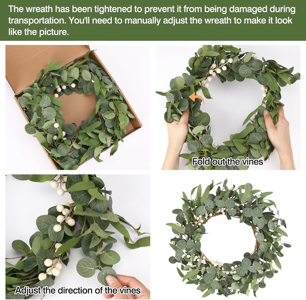 This gorgeous eucalyptus wreath instantly elevates my front door with its lush greenery and farmhouse charm! The quality is fantastic—full, realistic leaves and sturdy construction that holds up well against wind. It adds such a fresh, welcoming vibe to my porch, and I’ve gotten so many compliments from neighbors. Perfect for spring but timeless enough to keep up year-round. Love it!