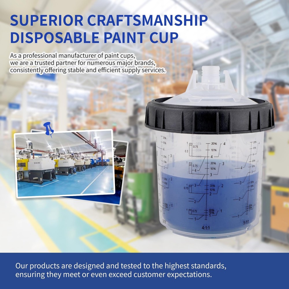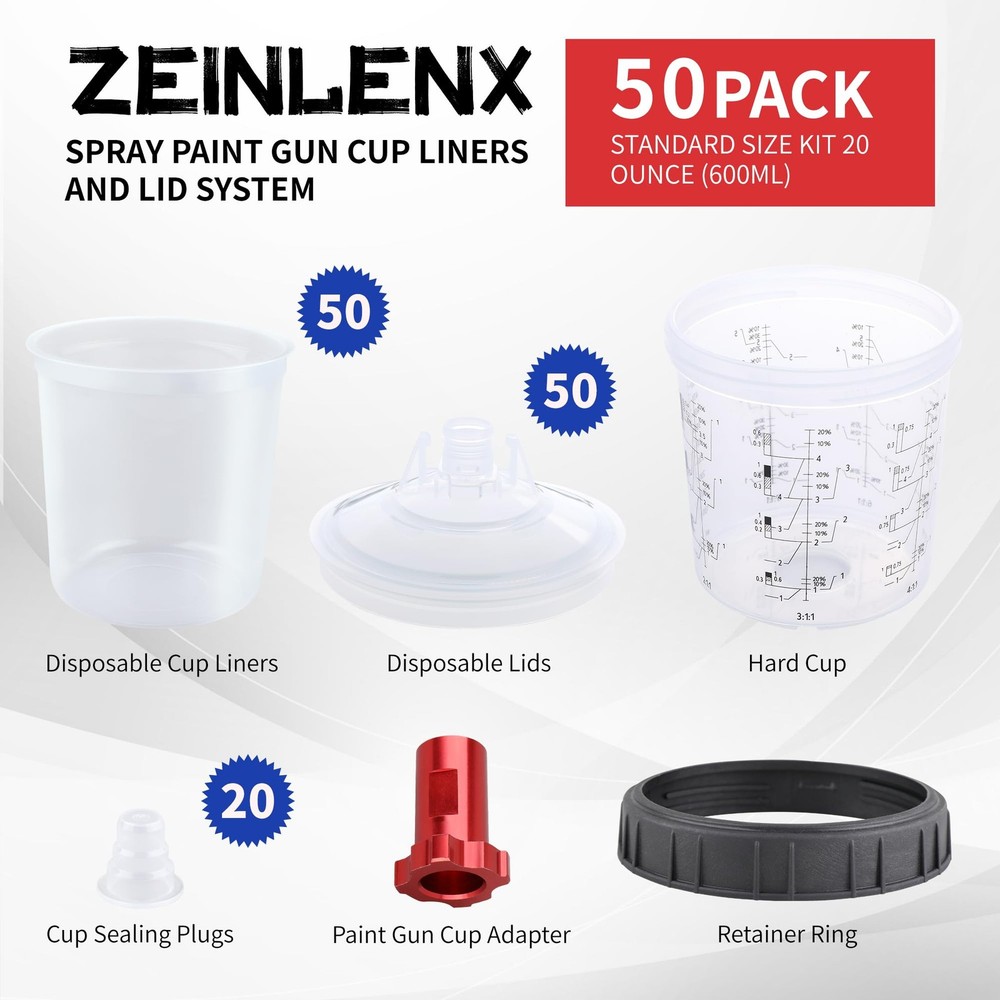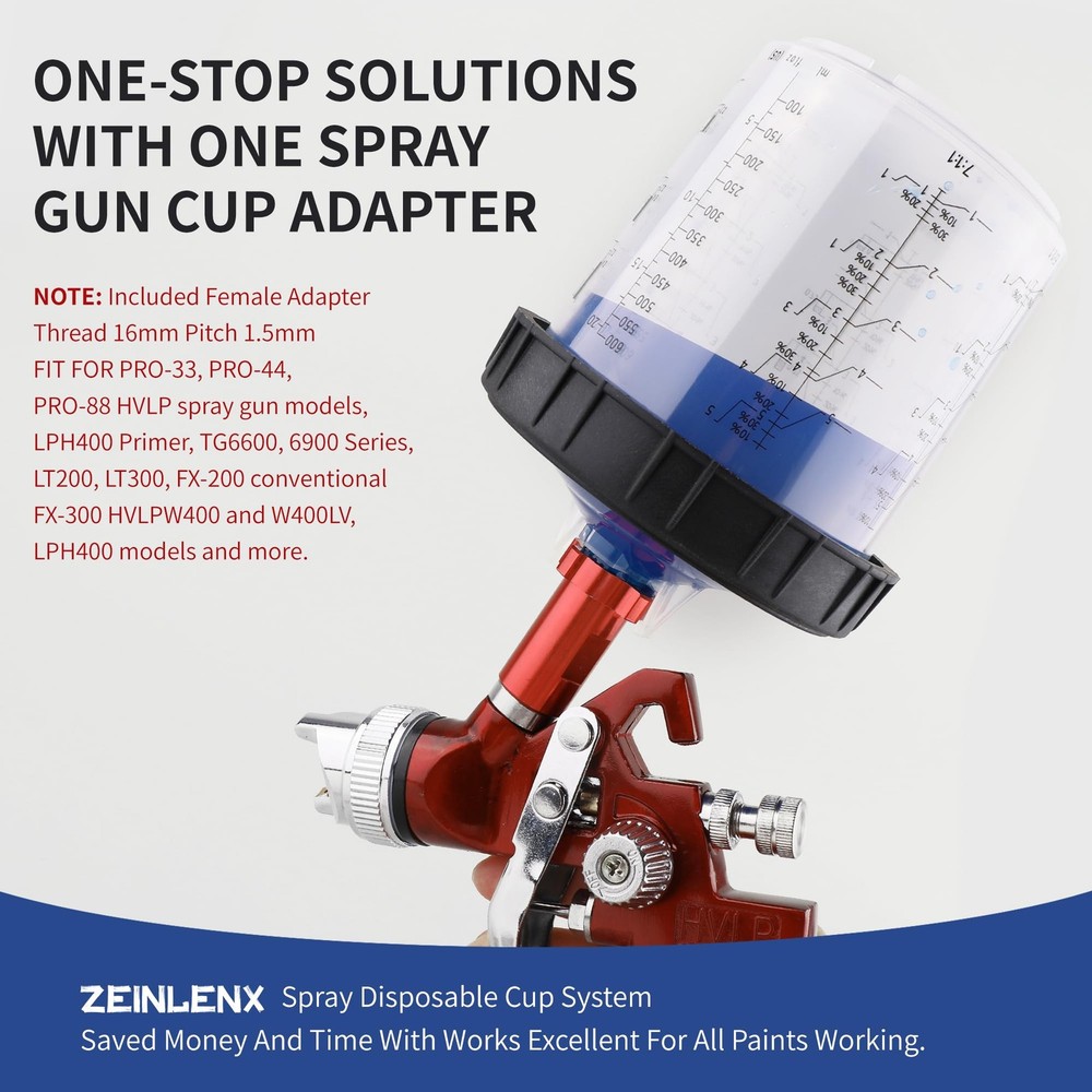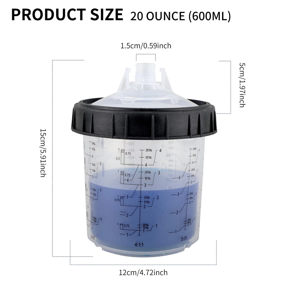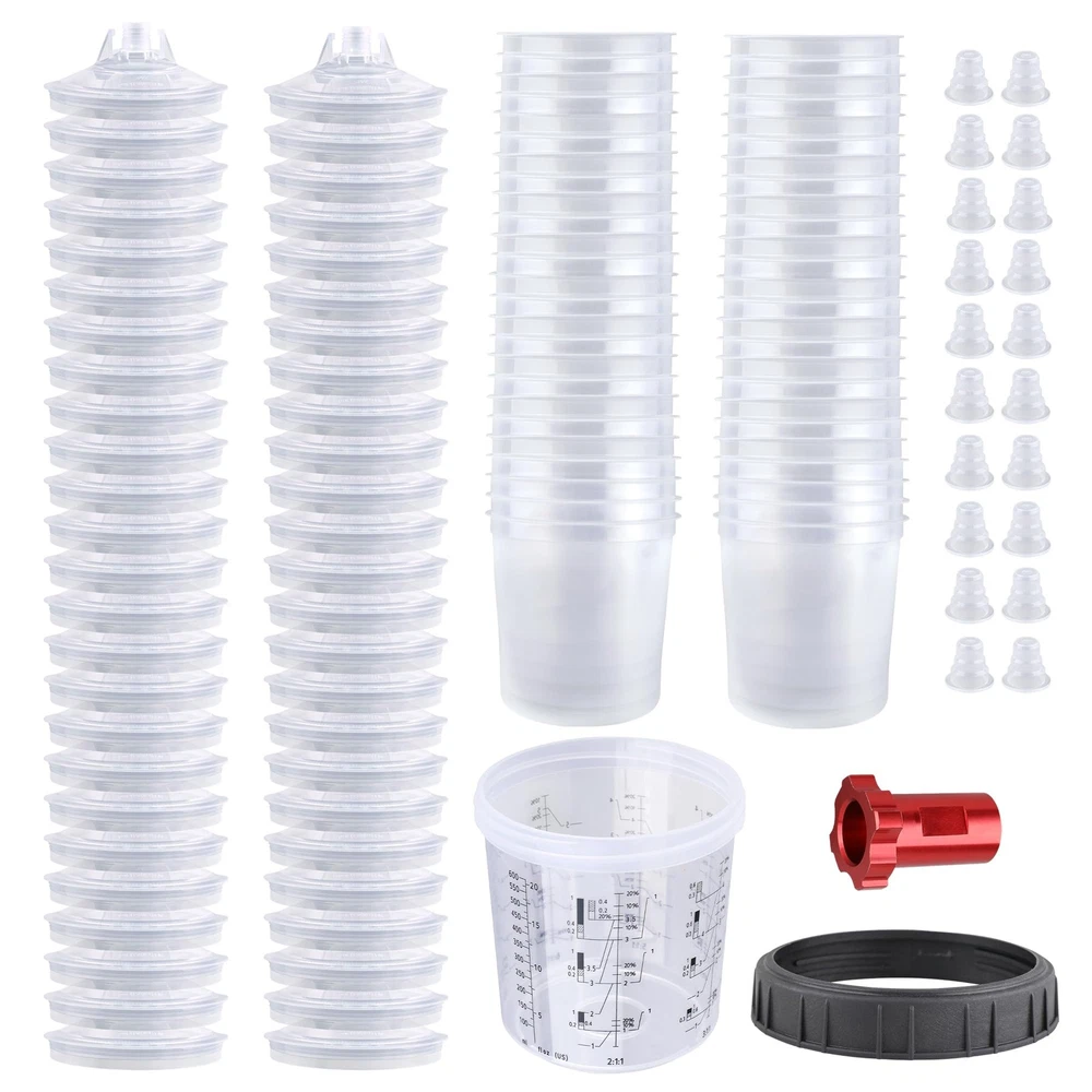 Disposable Paint Gun Cup, HVLP Paint Sprayer Gun Mixing Cups 20 Ounce(600ML) Kit with 50 Cups and Lids System, 10 Plugs and 1 Hard Cup with Retainer Ring, 1 Cup Adapter PLEASE NOTE: Paint gun cup adapter has a thread size of 16mm and 1.5mm pitch, fits for PRO-33 PRO-44 PRO-88 HVLP paint spray gun Models, LPH400 Models W400 W400LV LPH440 Primer TG6600 6900 Series LT200 LT300 FX-200 Conventional FX-300 HVLP and more. Even if this adapter doesn’t fit your spray gun, you can still choose our disposable paint cup kit because it is very cost-effective. Value Package Includes: This hvlp paint cups with adapter set contains 50 disposable cup liners at 20 ounces (600ml),50 lids with built-in 125-micron fluid strainers, 1 hard cup with 1 retainer ring, 1 cup adapter and 10 sealing plugs. Mixing & Paint 2-In-1: This disposable automotive paint gun cup system can improve your spraying efficiency, saving you time, labor, and money. You never need to mix paint in an extra paint mixing cup! High-Quality Material: Our solvent-based paint lids can maximize equalized pressure and filter area even to paint flow as it is made of top-notch silicone-free material, minimizing waste of your paint and saving money. Wide Application: Suitable for automotive, furniture, industrial, marine, and art crafts. These automotive paint mixing cups are ideal for primers, topcoats, stains, and sealers as well as with gel coats, lacquers, and varnishes. Easy To Use: Our spray gun hard cup is designed with clear graduations and mixing ratios for common paint systems. A clear paint gun cup makes it easy to see the liquid level. Please note this cup system cannot be used with new 2.0 spray gun adapters, only suitable for 1.0 spray gun adapters(Please see the first bullet point for adapter information). 50 Pack Disposable Paint Gun Cups With Adapter - Set includes: 50 disposable liners, 50 lids, 1 hard outer cup and 1 retainer ring, 10 sealing plugs, 1 cup adapter Shipping We offer FREE shipping on all orders! We ship within Three business days of payment, usually sooner. We use a selection of shipping services such as UPS, FedEx, USPS etc. We only ship to the lower 48 states, no APO/FPO addresses or PO Boxes allowed. Local pickups and combined shipping options are not provided at this time. Return You can return a product for up to 30 days from the date you purchased it. Any product you return must be in the same condition you received it and in the original packaging. Please keep the receipt. Payment We accept payment by any of the following methods: PayPal Please pay as soon as possible after winning an auction, as that will allow us to post your item to you sooner! Feedback Customer satisfaction is very important to us. If you have any problem with your order, please contact us and we will do our best to make you satisfied. Contact Us If you have any queries, please contact us via ebay. We usually respond within 24 hours on weekdays. Please visit our eBay store to check out other items for sale! Thank you for shopping at our store.