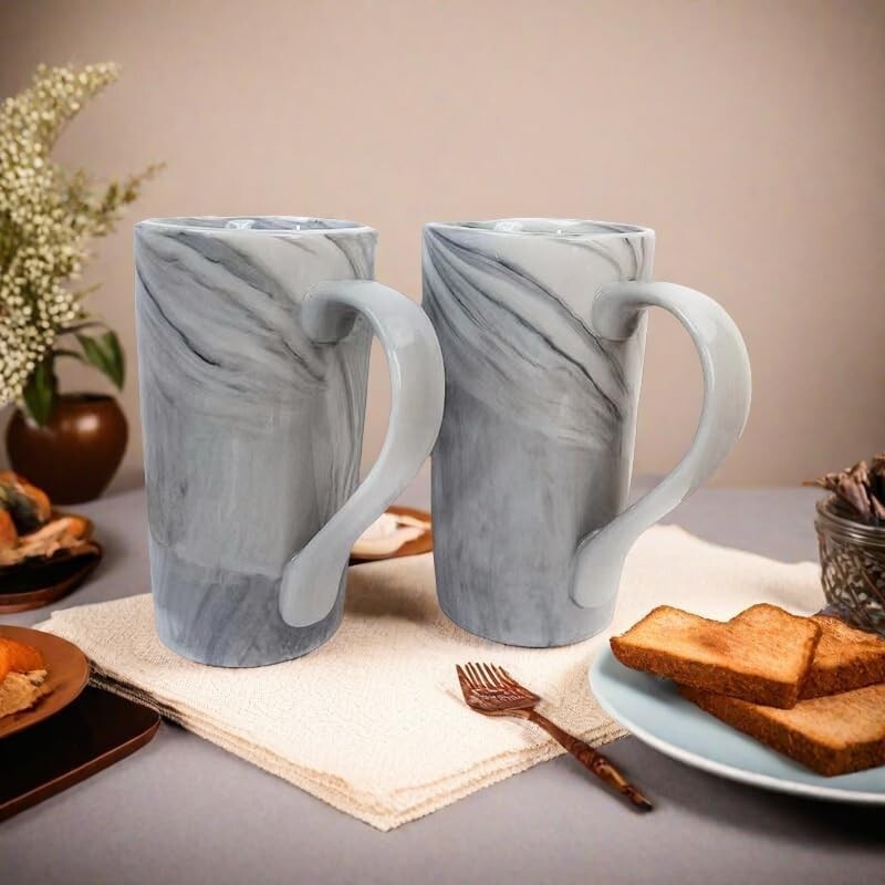 20oz Large Marble Coffee Mugs – Set of 2 Tall Ceramic Cups, Tea & Beer Mug Gift Color: Gray Special Feature Programmable Style Fine Theme Holiday 20 ounce Extra Large coffee mug size: 3.8" W x 6.1" H. Great for Latte coffee, tea, cocoa, cappuccino. Unique Design-Easy to grip large handles, elegant and unique marbling on each cup, no two cups are alike. Stylish and atmospheric mug for Men Women Professional Porcelain-Made of high quality marble ceramic, Durable and easy to clean, lead-free and non-toxic. Safe for Dishwasher, Microwave, Oven and Freezer. The Perfect Mug Gift-It is packaged in a well-wrapped box, a perfect gift for your friends and family in any occasion such as Housewarming, Wedding Party, Mothers' Day, Fathers' Day, Christmas and New Year's Day