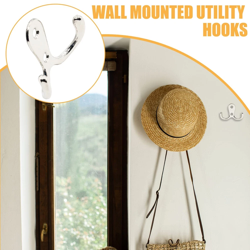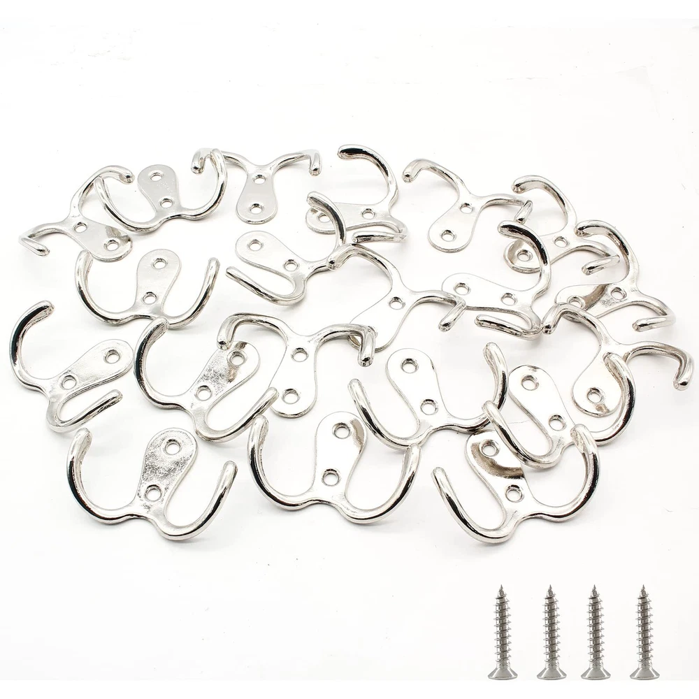 20pcs Coat Hooks, Heavy Duty Wall Hook, Double Prong Robe Hook Wall Mount Han...